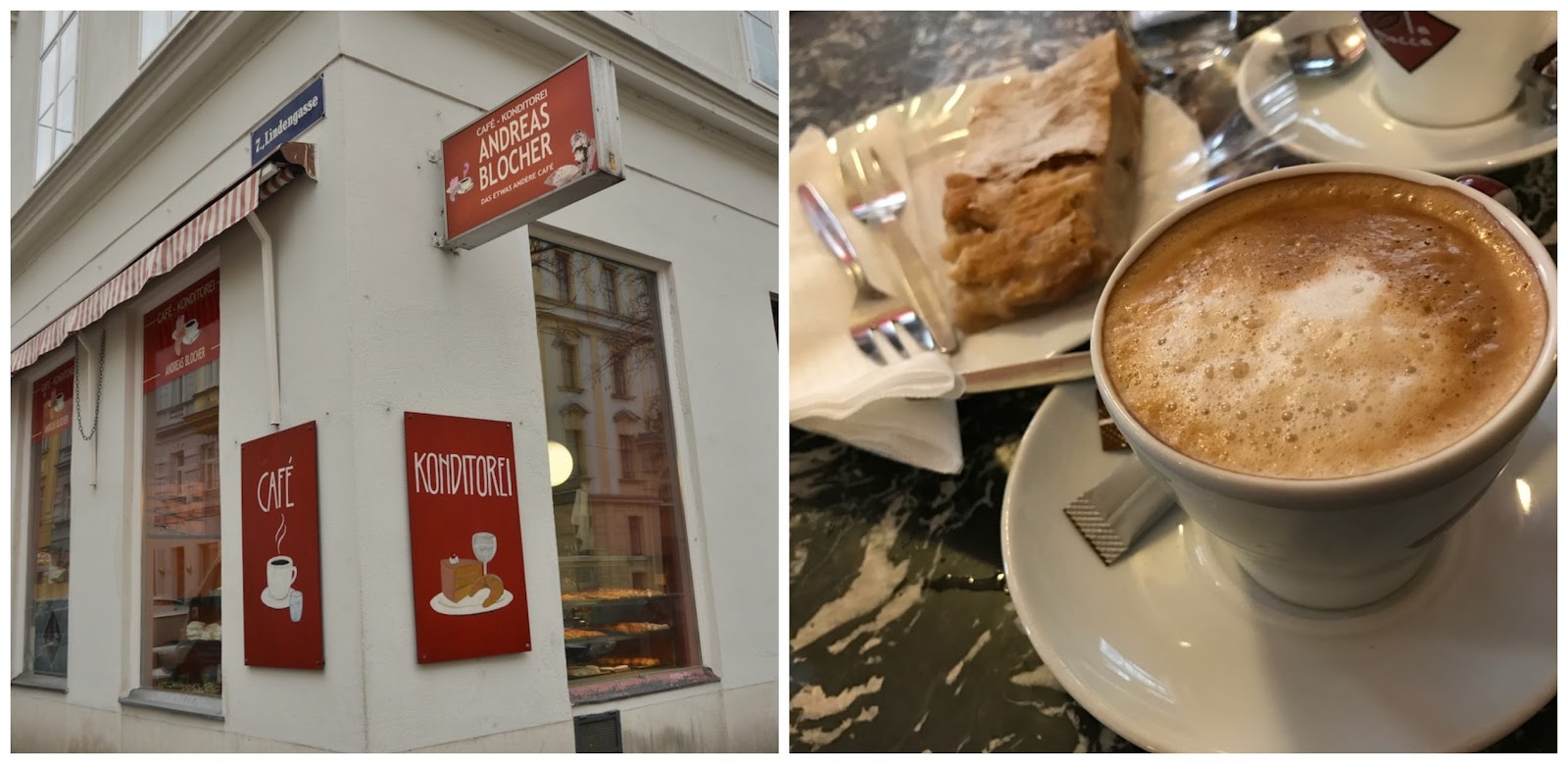 Antes de continuar, decidimos hacer una pequeña parada y tomar un típico melange (café con leche) y una porción de apfelstrudel para compartir, en un pequeño café de barrio.