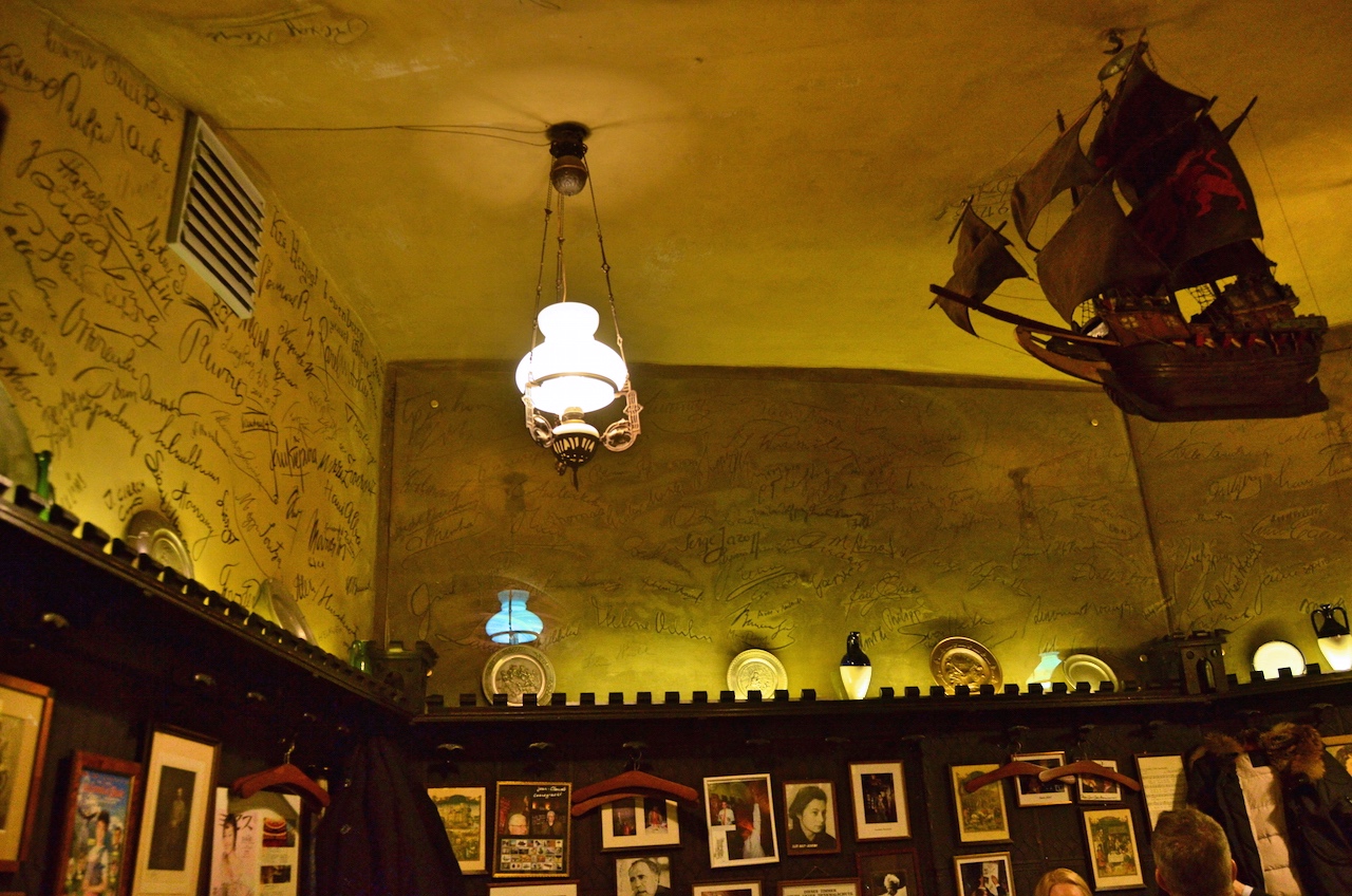 Después de hacer un poco de tiempo nos fuimos a cenar a una taberna que queríamos visitar. La Der Liebe Augustin, se encuentra en el centro histórico, en Fleischmarkt 11 y es un lugar donde antiguamente se reunían músicos e intelectuales, grandes genios de la cultura vienesa. Se reunían en una de las salas de la taberna en la cual dejaban su firma en el techo, entre esas firmas está la de Beethoven.