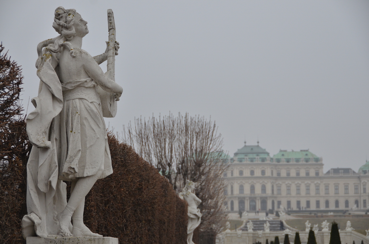 El Palacio del Belvedere es una joya barroca que se compone de dos edificios que se encuentran separados por unos jardines a la francesa, con terrazas, cascadas, fuentes, esculturas…. Aunque en esta época del año no estaban en su mejor momento, todo sea dicho jejeje.