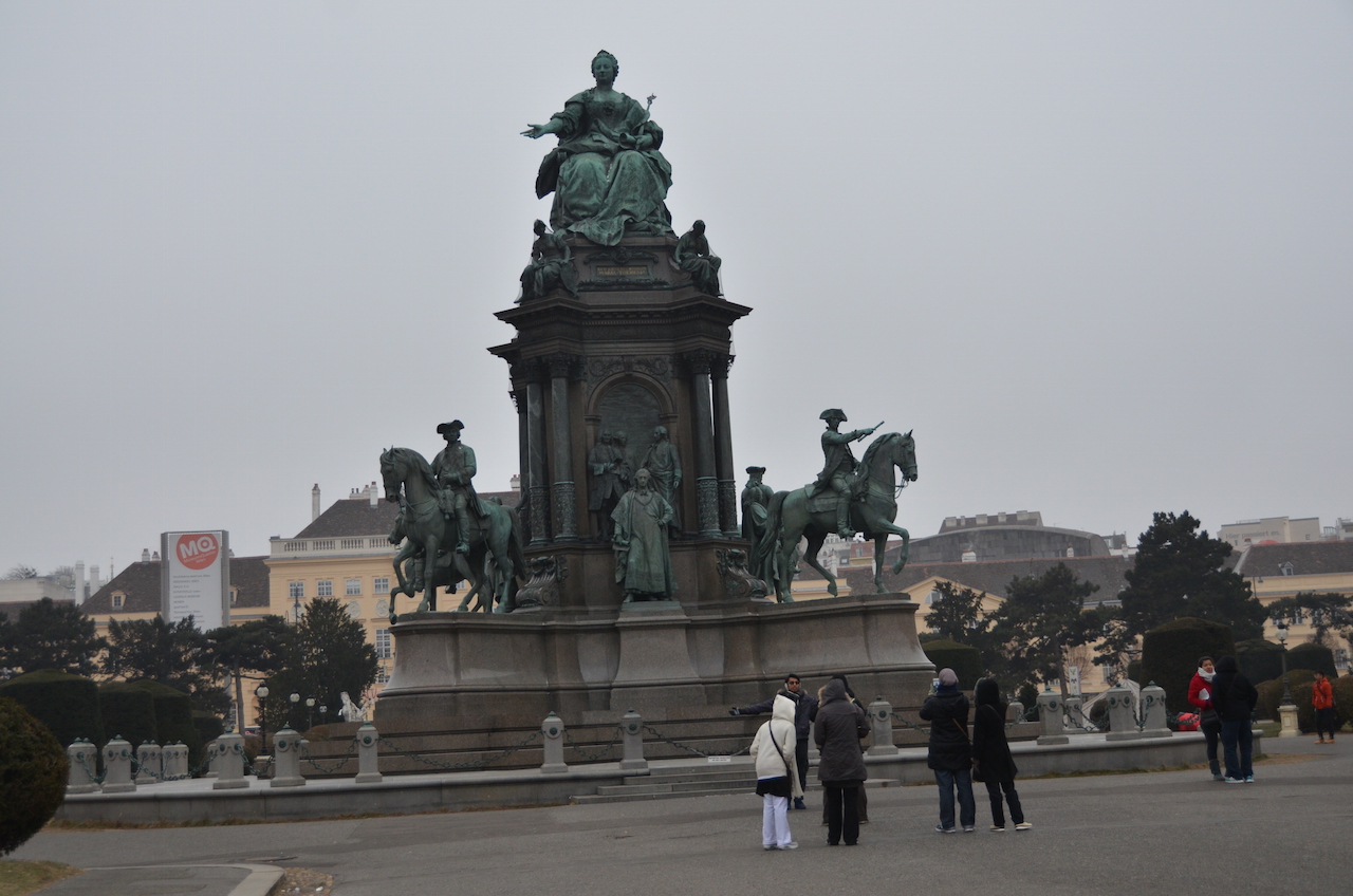 Preside la plaza el monumento de la emperatriz Maria Teresa y a ambos lados de la plaza se encuentran dos edificios gemelos que albergan los Museos de Historia del Arte y de Historia Natural, que también son monumentos en sí mismos.