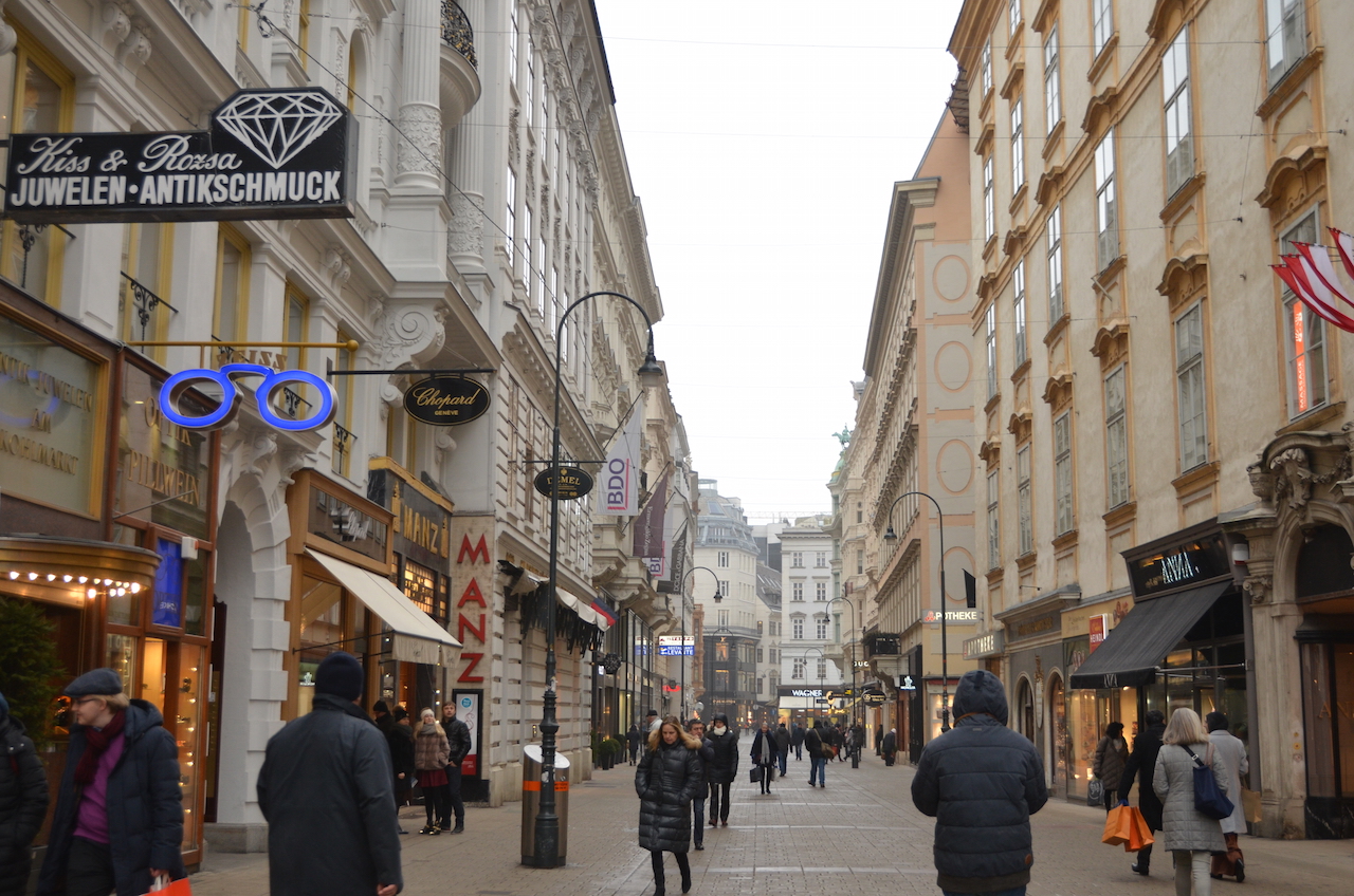 Desde allí avanzamos por la preciosa Kohlmarkt strasse, donde se encuentra una de las pastelerías más famosas de la ciudad, la Demel, aunque no íbamos con muchas ganas de comer nada, ya que veníamos del Café Sperl, al menos queríamos pasar a verla, así que eso es lo que hicimos (bueno al final compramos unos bombones individuales que nos comimos en el avión de regreso a casa).