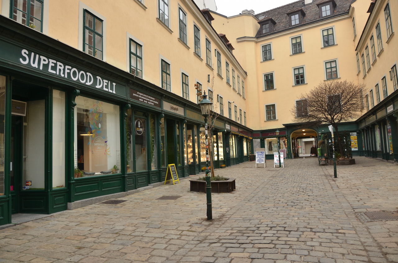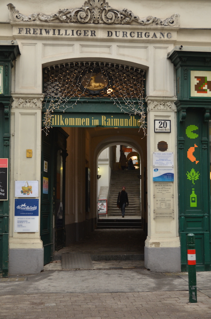 Avanzamos un poco por la calle y nos desviamos para cruzar por el Raimundhof, un pequeño callejón donde hay tiendas y algún bar y que va a parar a una de las calles comerciales más famosas, la Mariahilfer Strasse.