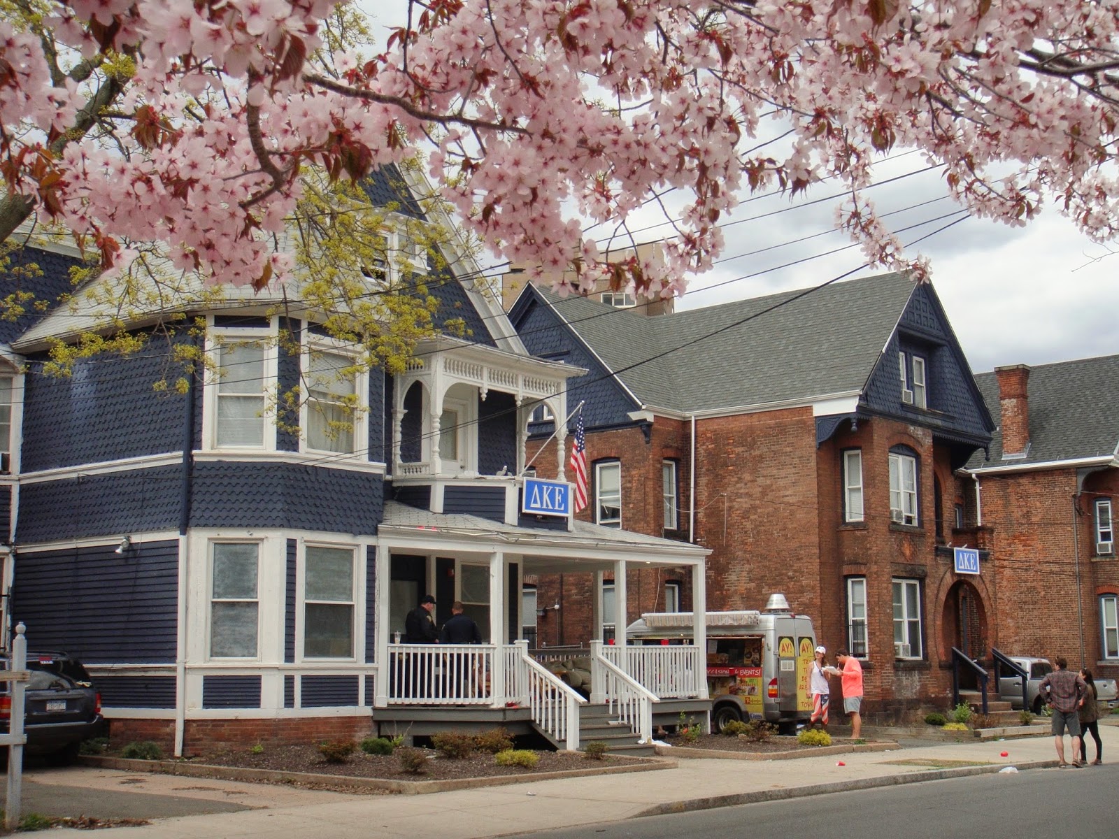 Nos volvemos a casa a descansar un rato, no hay que perder las buenas costumbres del ratito de siesta, jejeje, bueno, si nos lo permiten nuestros vecinos de la fraternidad «Delta Kappa Epsilon». Se trata de la fraternidad universitaria masculina más antigua de Nueva Inglaterra. Fue fundada en la universidad de Yale en 1844 por un grupo de 15 estudiantes, tiene 64 sucursales repartidas por las universidades del país y hoy son más de 85.000 miembros.