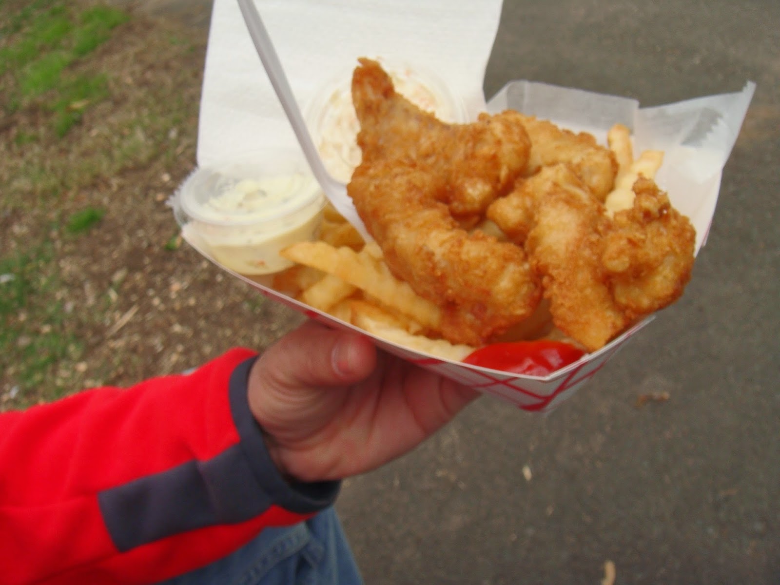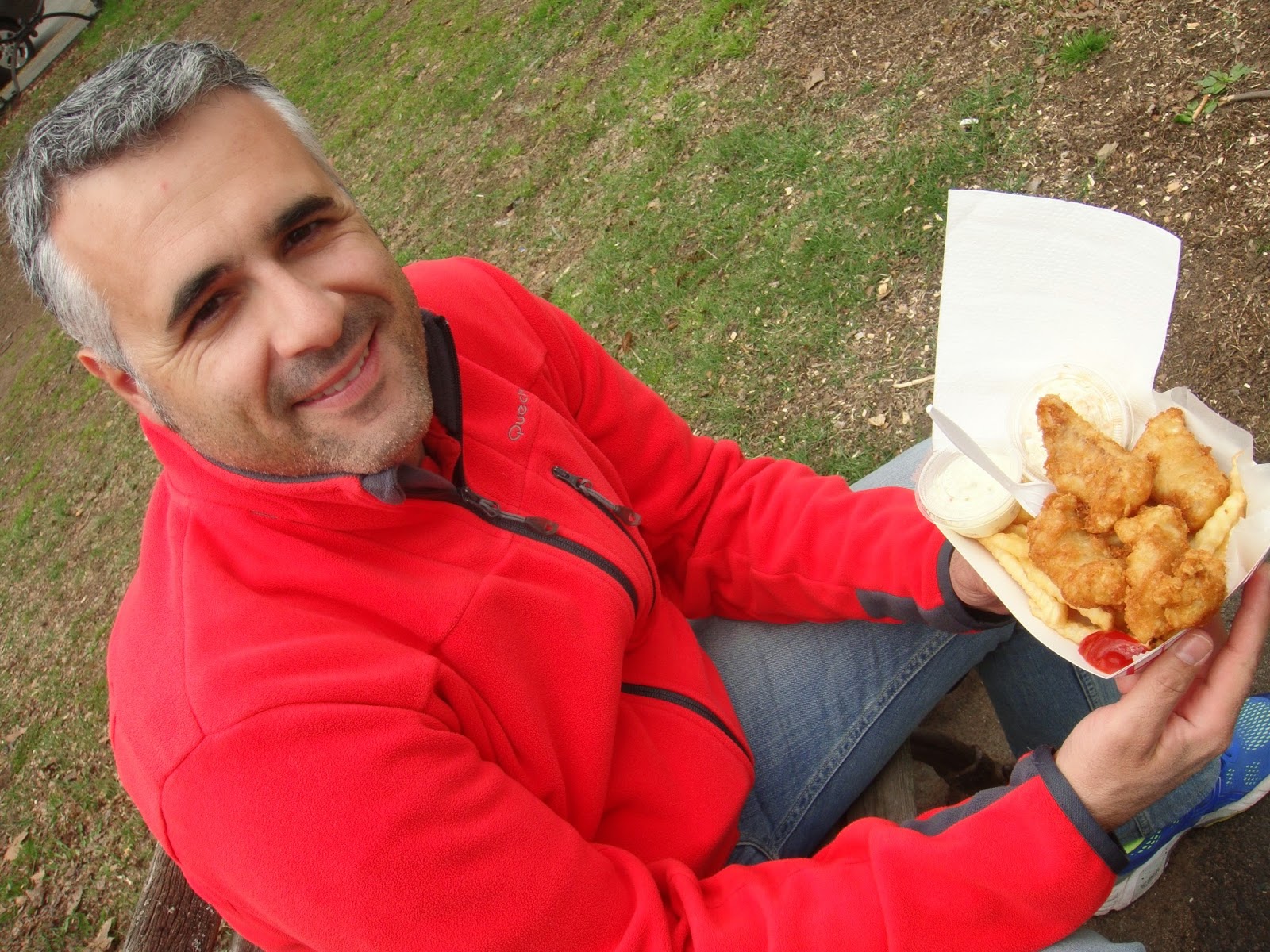 Como la mayor parte de los visitantes, hemos comido en uno de los puestos que habían instalado, concretamente en un food truck que tenían fish and chips. Hemos pedido uno para compartir y nos ha sorprendido bastante de lo bueno que estaba, era bacalao con un rebozado crujiente y nada grasiento, la verdad es que no me extraña que haya tanta cultura de los Food Truck, porque realmente se esmeran en hacer buena comida.