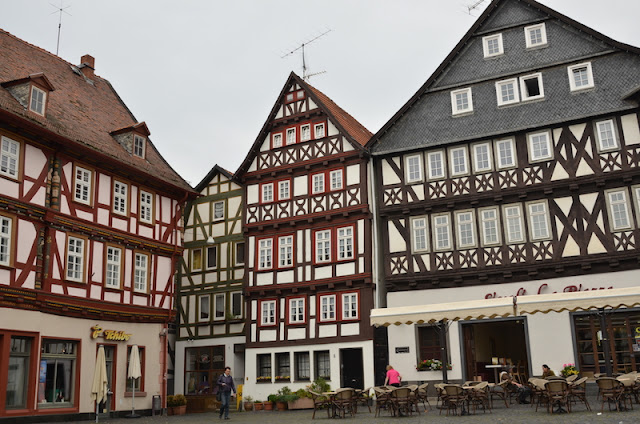 Alsfeld tiene un encanto especial y por ello, nos resistíamos a abandonarlo, así que dimos alguna que otra vuelta por su centro medieval disfrutando de las maravillosas casas de piedra y madera, la mayor parte de ellas del s. XIV, alguna con inscripciones en sus vigas.