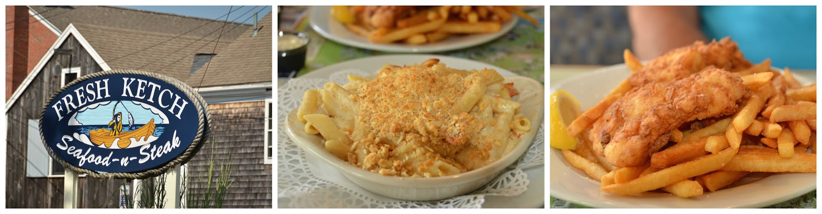 Para comer hemos elegido uno de los muchos restaurantes de la calle principal, el Fresh Ketch, donde hemos pedido una pasta con la típica langosta de Nueva Inglaterra y un Fish and Chips que también hacen muy bueno por esta zona.