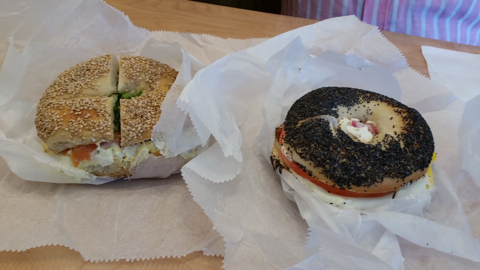 Hoy, pensando que había un mercado en la Beinecke Plaza, habíamos pensado comer allí, pero al ser fiesta han debido cancelarlo y al final nos hemos ido a comer a un sitio de bagels que hay bastante cerca.