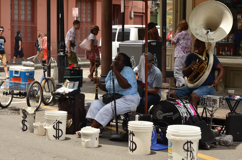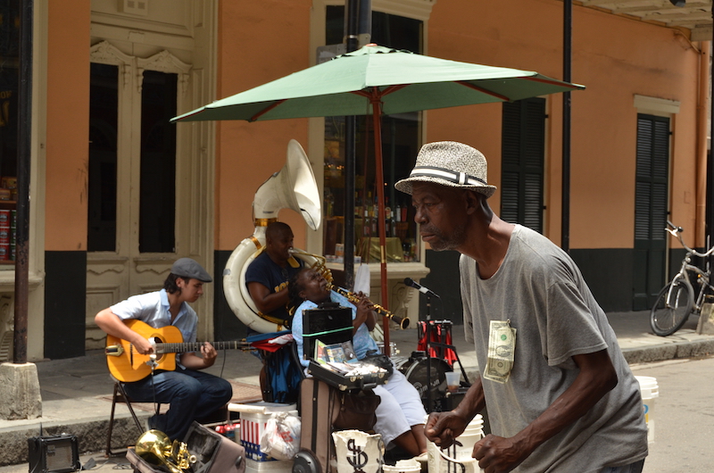 El autobús del tour nos deja en el hotel y decido ir al barrio francés a comer y a dar una vuelta, excepto la calle Bourbon, que es donde están la mayoría de bares de copas y es un poco ruidosa de más, es un barrio encantador, donde pasear se convierte en toda una experiencia donde puedes disfrutar de música en directo, entrar a tiendas de antigüedades y a las galerías de arte que se concentran sobre todo en la calle Real, Royal St. Me encanta ir con mi cámara de fotos captando detalles del ir y venir de sus gentes, alguno bastante peculiares por cierto. Los músicos que están en la calle son especialmente buenos, o por lo menos a mí me lo han parecido, no soy ni mucho menos una experta en jazz, pero reconozco que es una música muy agradable que puede llegar a enganchar.