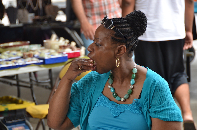 Después de comer y para resguardarme un poco del calor de las horas centrales, me he ido al French Market, ya que está cubierto y los ventiladores en el techo hacen que la temperatura sea algo más agradable que en el exterior. La primera parte del mercado es de comida típica de Louisina, tiendas con muchas salsas, cervezas, y algo que me ha sorprendido mucho, las salchichas elaboradas con carne de alligator, algo que por lo que se ve está bastante extendido, pues se sacrifican muchos de estos animales para la alimentación, prueba de ello son la cantidad de cabezas de alligator que venden en el mismo mercado como souvenir, no sé cómo a la gente le puede gustar tener algo tan desagradable en una estantería de su casa. De todas formas, lo de lo que se come o no se come es claramente cultural, si tu naces es un lugar donde se come cocodrilo, pues lo incorporas a tu dieta como algo normal, supongo que a muchos foráneos tampoco les agradaría mucho comerse un plato de caracoles en salsa……aunque eso sí, hay cosas que puedo probar y otras que creo que no probaría de ninguna de las maneras a pesar del «donde fueres haz lo que vieres», el alligator al menos no estaba mal.