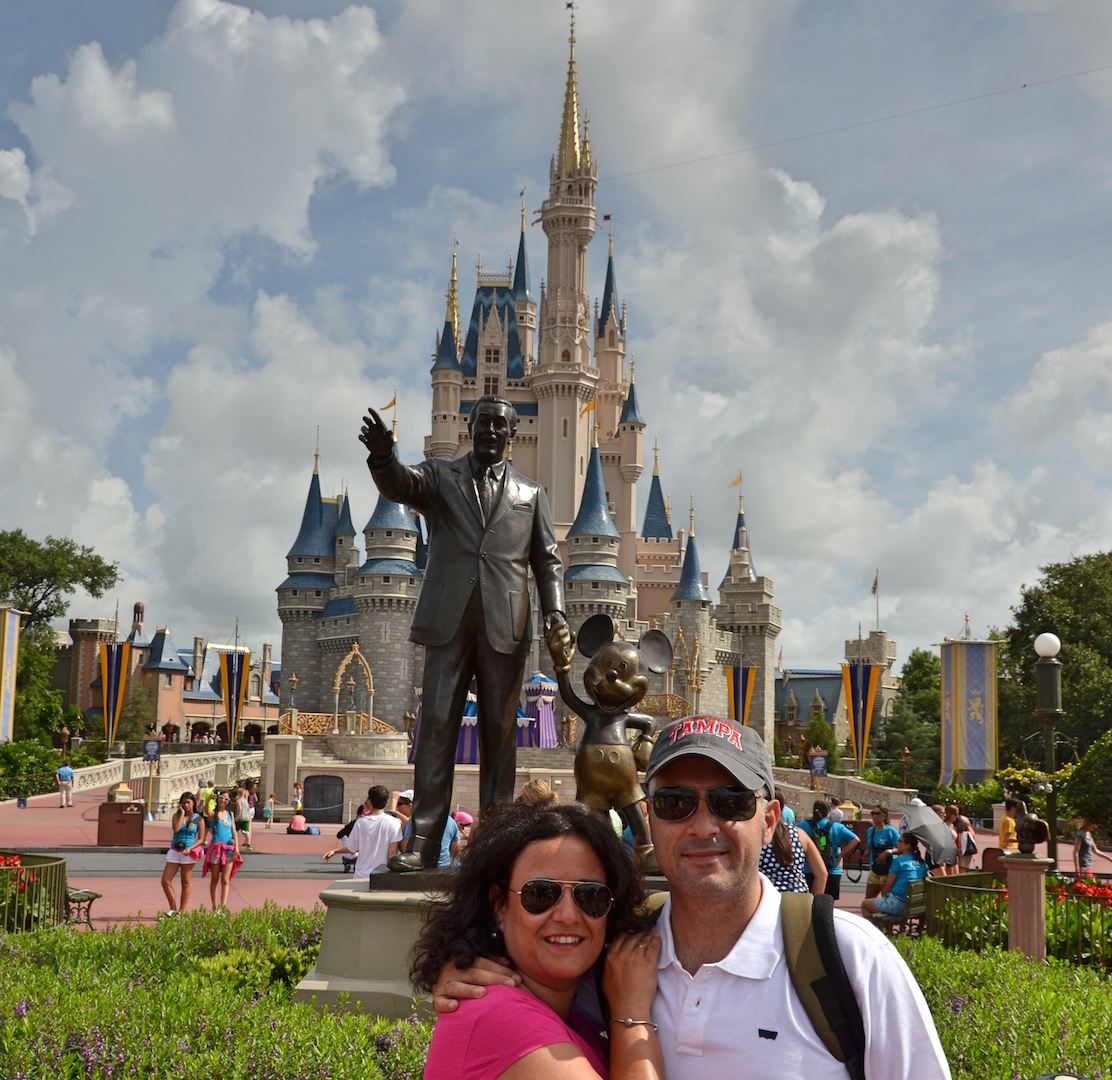 El primer paso del imperio Disney en Orlando fue el parque Magic Kingdom, abierto desde 1971. El Castillo de Cenicienta es la imagen más característica de este parque, presidida por el fundador de todo el complejo acompañado del ratón más conocido del mundo.