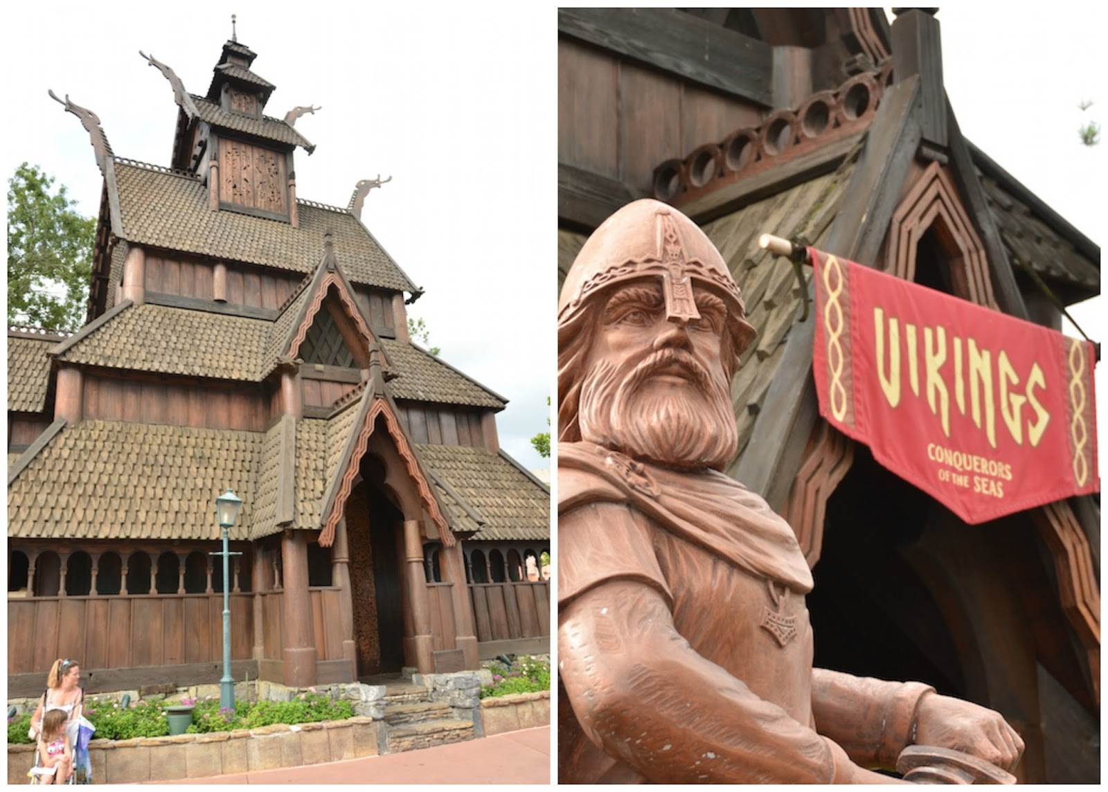 Noruega, con una típica iglesia de madera y una zona dedicada a los vikingos.
