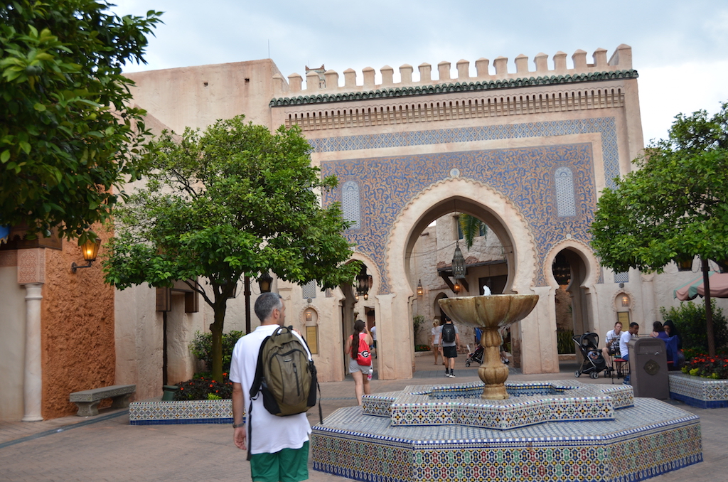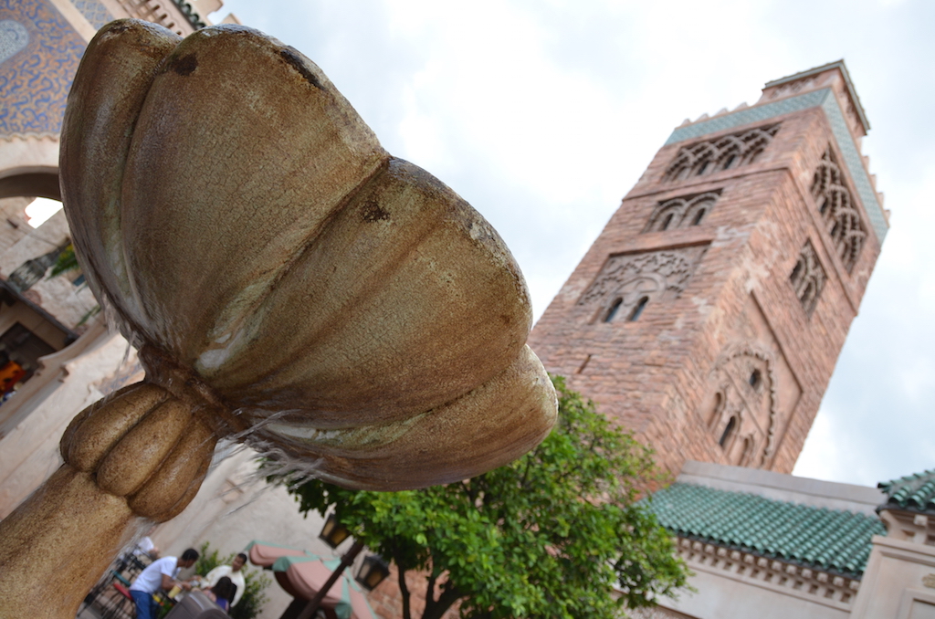 Y otra vez toca cambiar por completo de cultura, Marruecos nos recibe con una reproducción de la Torre de la Koutoubia, un zoco y hasta bailarinas de danza del vientre.