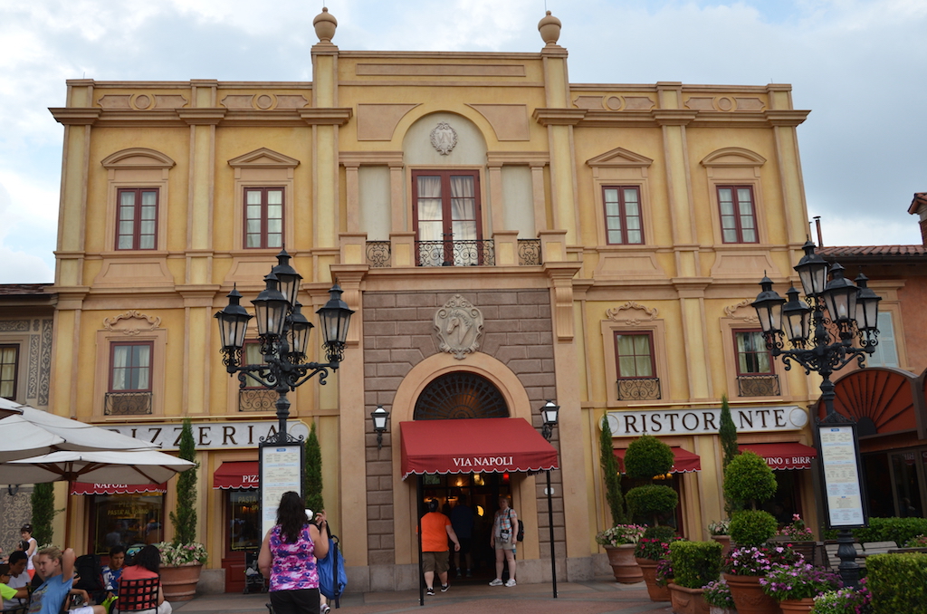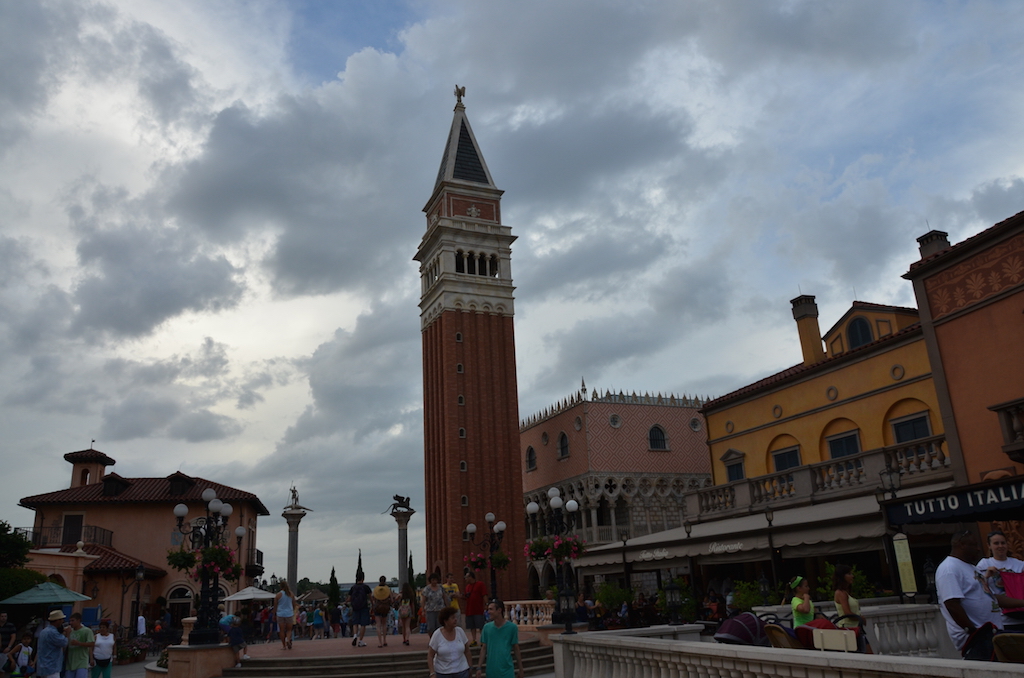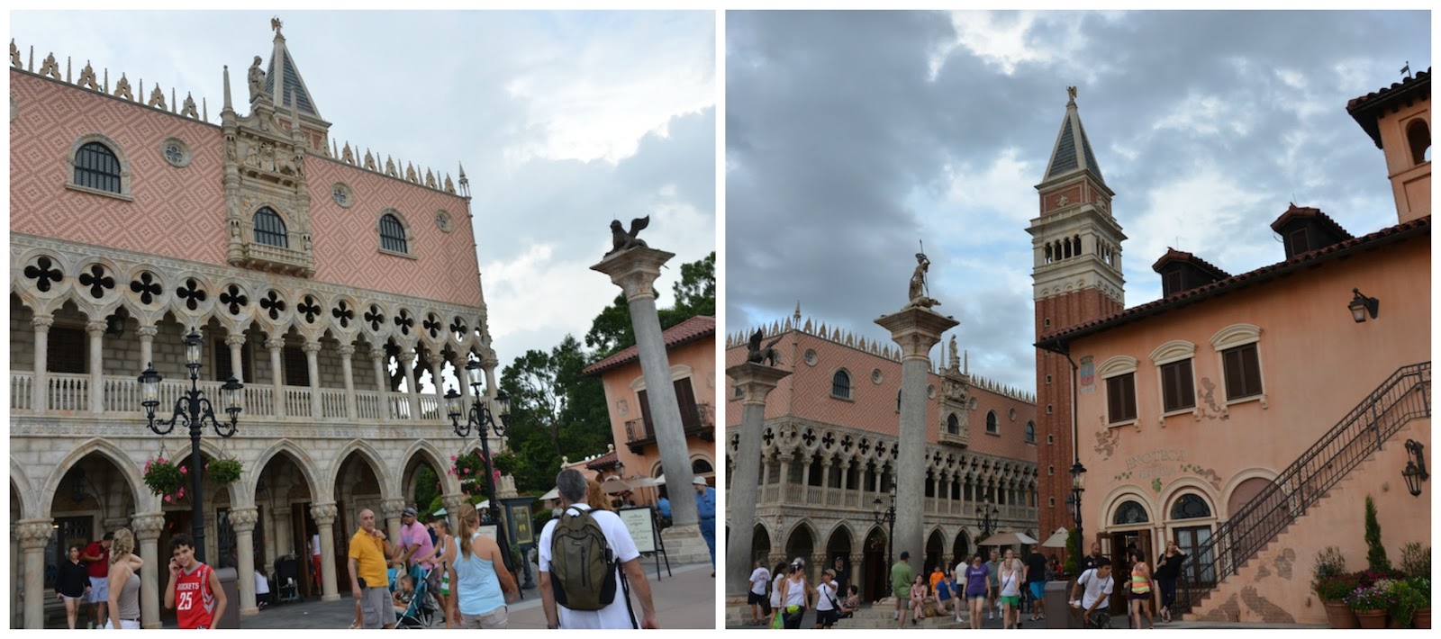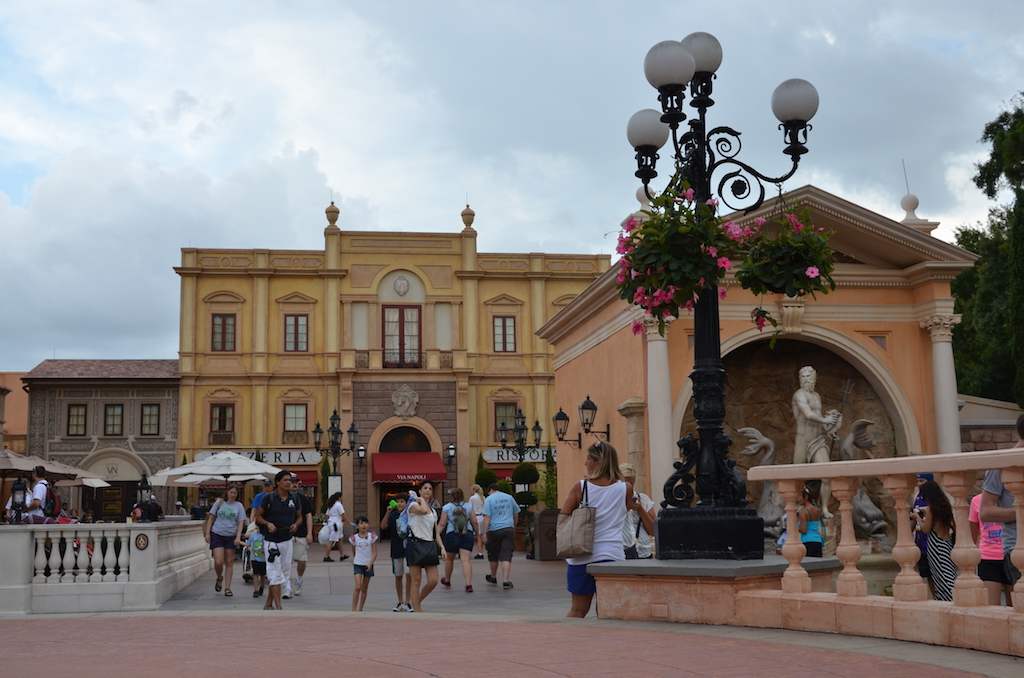 El siguiente país es Italia, donde encontramos los típicos restaurantes italianos, fachadas renacentistas y hasta una recreación de la ciudad de Venecia.