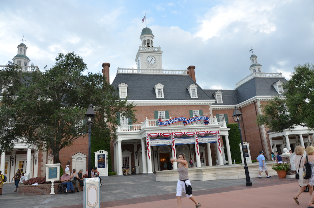 American Adventure, donde se hace un interesante repaso a la historia de los Estados Unidos a través de diferentes personajes importantes como Benjamin Franklin.