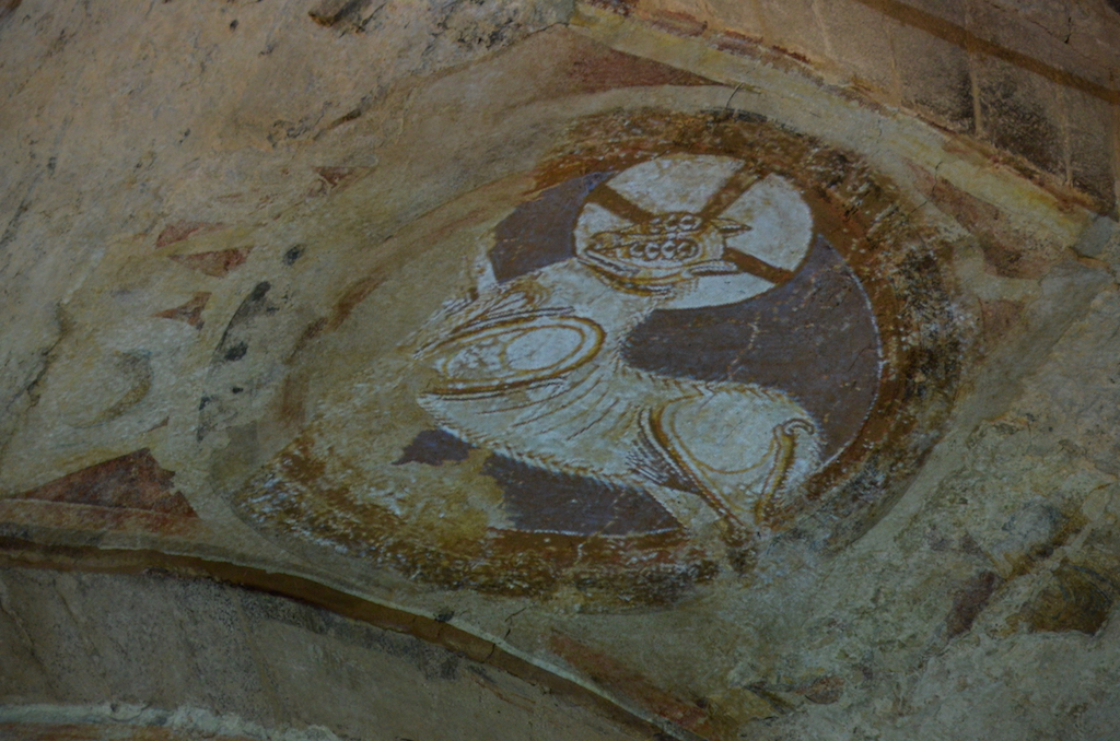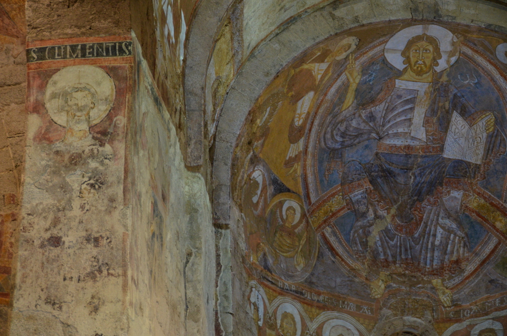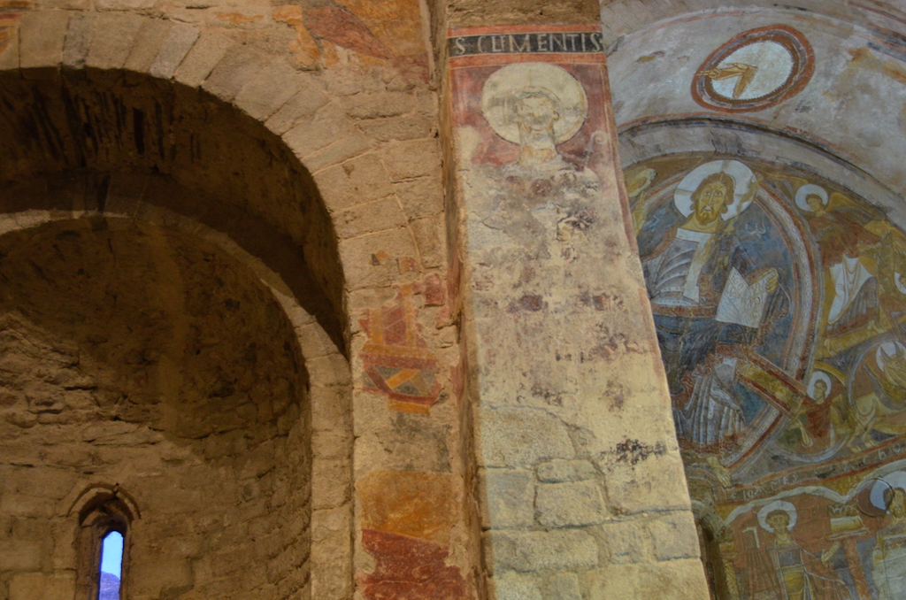 La pintura que aparece en el muro de la izquierda que corresponde al St Climente, es una de las pinturas originales que se conservan en el interior.