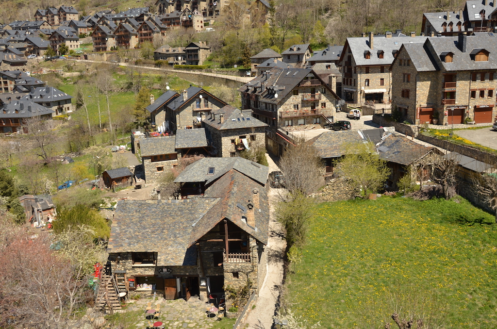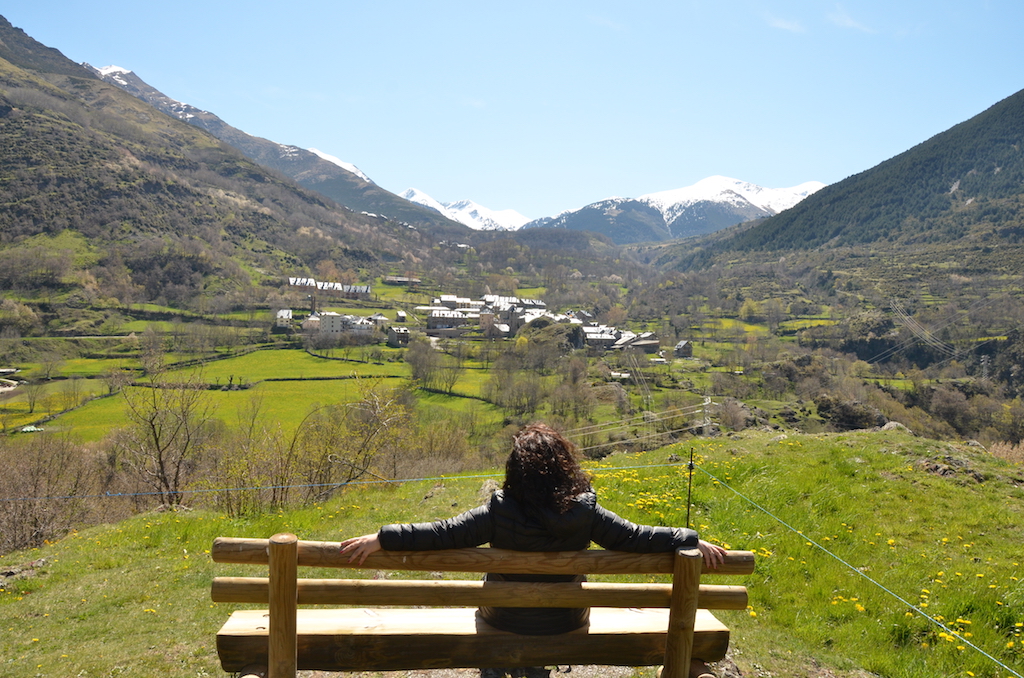 Merece la pena avanzar un poco caminando hasta el final del pueblo y sentarse en uno de los bancos con las mejores vistas de Valle, desde allí podemos ver el pueblo de Boí y de Taüll.