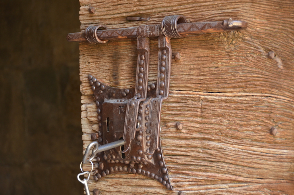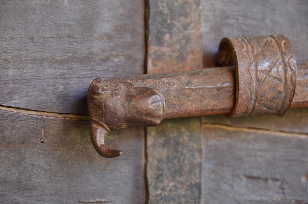 También en la puerta encontramos unos de los mejores cerrojos de todo el conjunto románico del Valle, decorado con motivos geométricos y con una cabeza en el extremo.