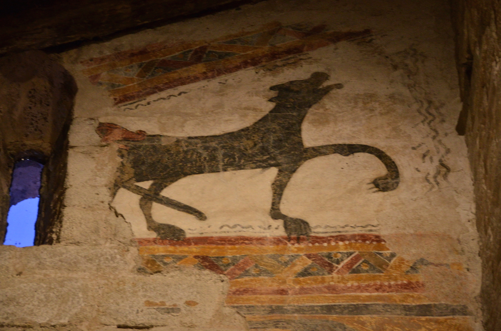 Debajo de las pinturas murales también se conservan unos grafitos medievales con escenas de carácter militar.