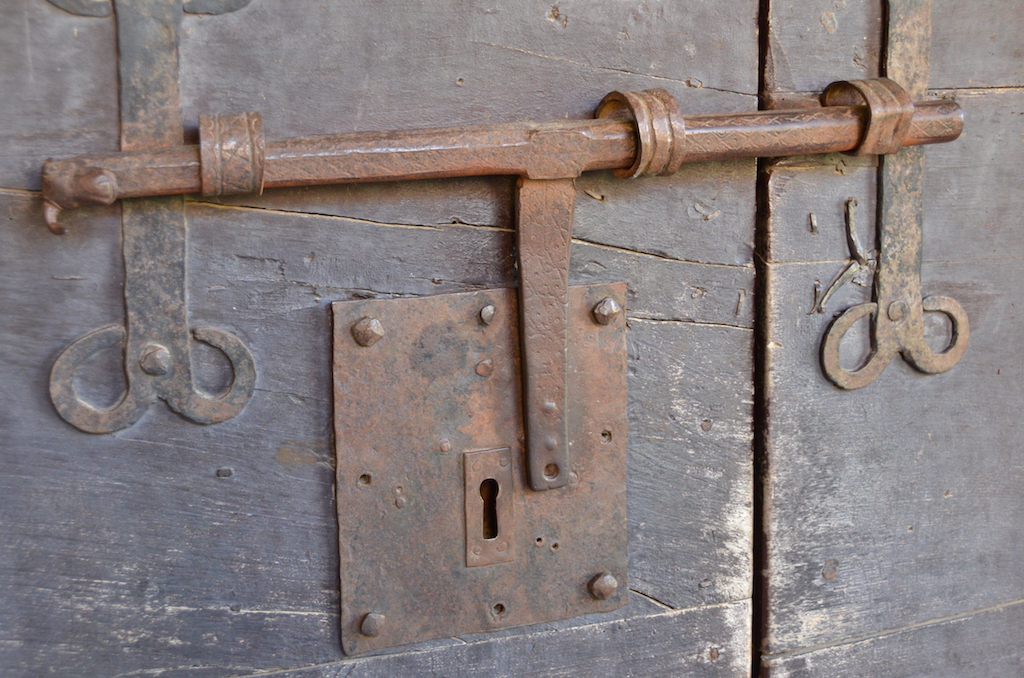 También en esta iglesia encontramos un cerrojo románico de hierro forjado acabado en forma de cabeza de animal.