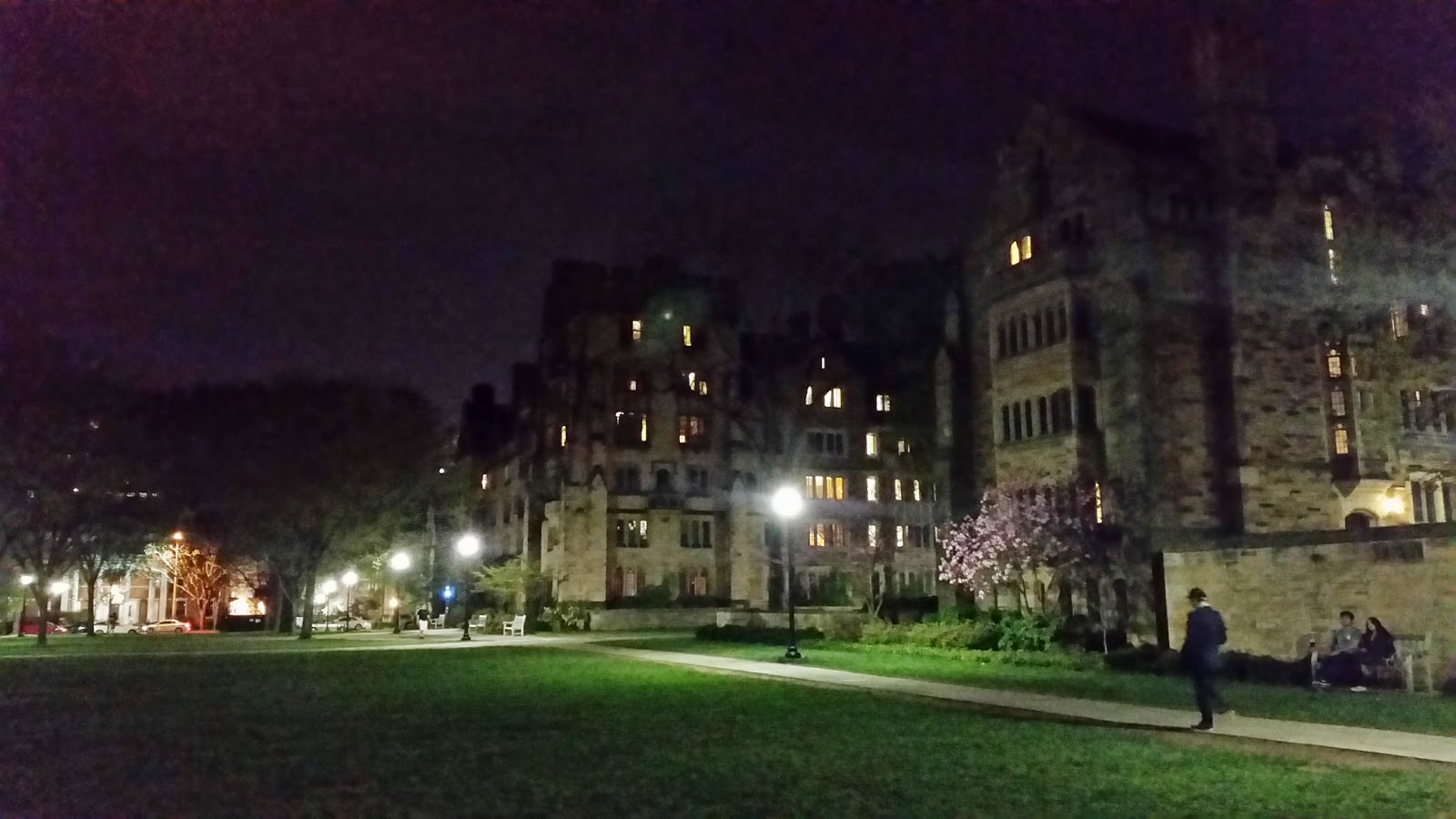 Hemos vuelto a casa dando un paseo por el campus, como la noche estaba muy buena, en cuanto a temperatura se refiere, había mucho ambiente, los estudiantes están recogiendo sus cosas y llevando cajas a los camiones store que se las guardan hasta la vuelta después de las vacaciones de verano. Los edificios con las luces encendidas también tienen su encanto, parecen más de Harry Potter si cabe, jejeje.