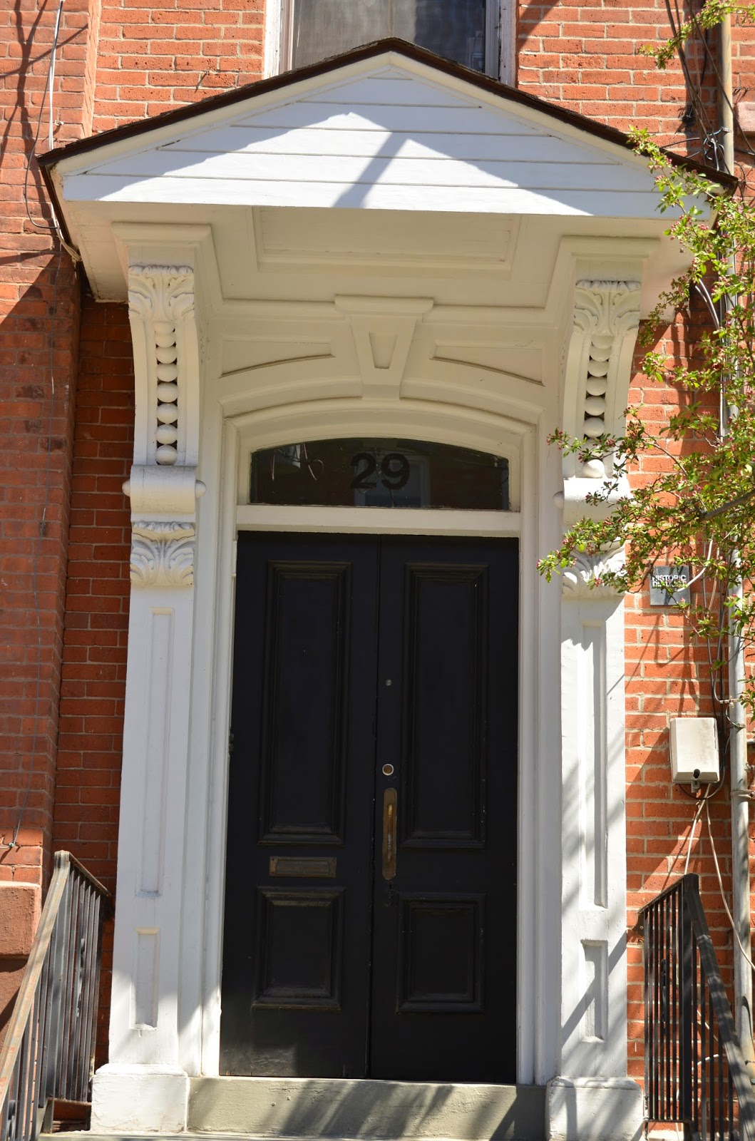 Court St es, sin duda, una de las calles más bonitas de New Haven, al menos de las que he descubierto hasta ahora. Es una calle pequeña, situada en el Distrito Histórico cercano a Wooster Sq. Cada casa tiene una puerta de un color diferente, todas en el mismo estilo, algunas con más decoración que otras, más cuidadas o menos, pero todas con un encanto especial.