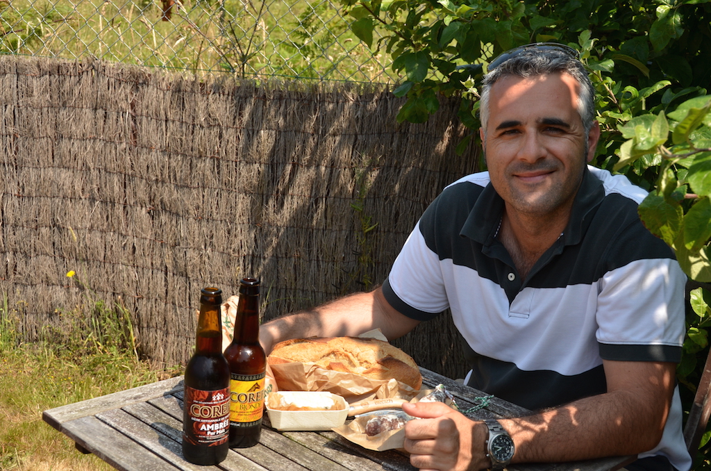 Antes de visitar el fuerte, buscamos un lugar donde hacer nuestro «picnic» con los productos que habíamos comprado en el mercado de Dinan, y vaya si lo encontramos!!! Un pequeño bar con unas mesas de madera fue nuestro restaurante de lujo improvisado, allí compramos dos cervezas bretonas y nos sentamos a degustar nuestro manjar.