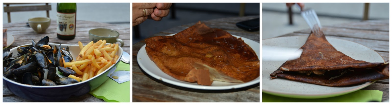 Para cenar elegimos una crepería que se encontraba justo al lado de la catedral, unos mejillones, un crep salado y uno dulce para compartir fueron nuestra cena en un entorno encantador, acompañado de una sidra bretona de la que estábamos empezando a «ser dependientes» jejejeje.