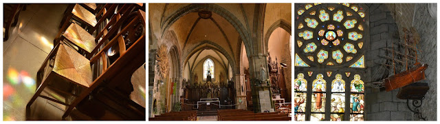 En su interior destacan las vidrieras, las cuales aportan una luz muy bonita al templo, con una gran nave central y dos naves más separadas por esbeltas columnas.