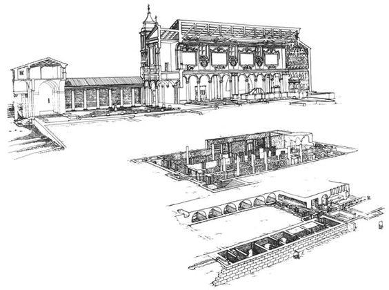 En 1857 comenzaron las excavaciones bajo la basílica, descubriendo la basílica originaria del siglo IV. Pero aún más abajo y realizando nuevas excavaciones, salieron a la luz los restos de una estructura del siglo I que fue modificada durante el siglo II para ser usada como mitreo por los seguidores del dios persa Mitra.