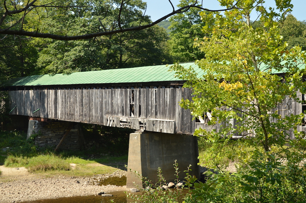 Continuamos hasta otro punto de interés que teníamos marcado, el puente cubierto de Townhend, el más largo de todos los del estado de Vermont, no se puede cruzar porque no se encuentra en muy buen estado, pero puede apreciarse su longitud y su antigüedad. Merece la pena desviarse un poco de la ruta 100 para acercarse a verlo.