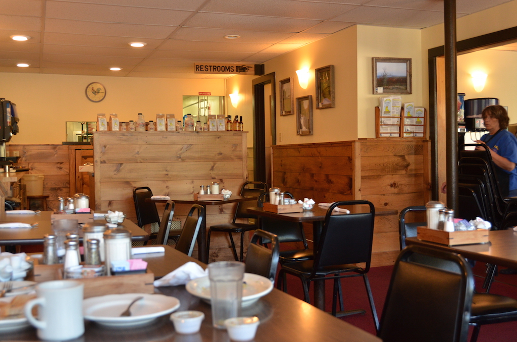 Antes de continuar avanzando hacia el sur por la carretera 100, paramos a desayunar en el pueblo, en un diner en el que pedimos, a parte de té y café, unos huevos con tostadas, muy típico americano.