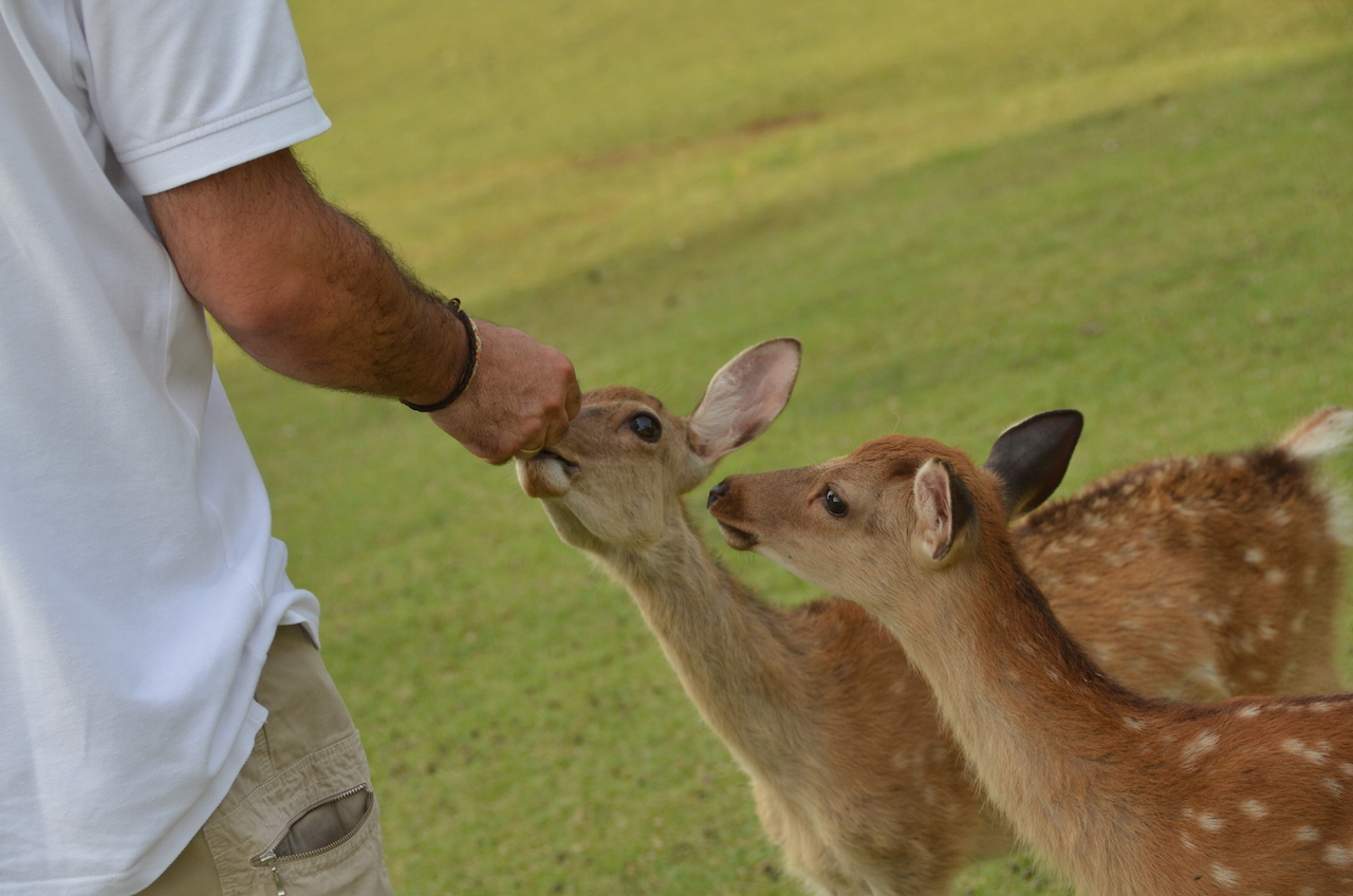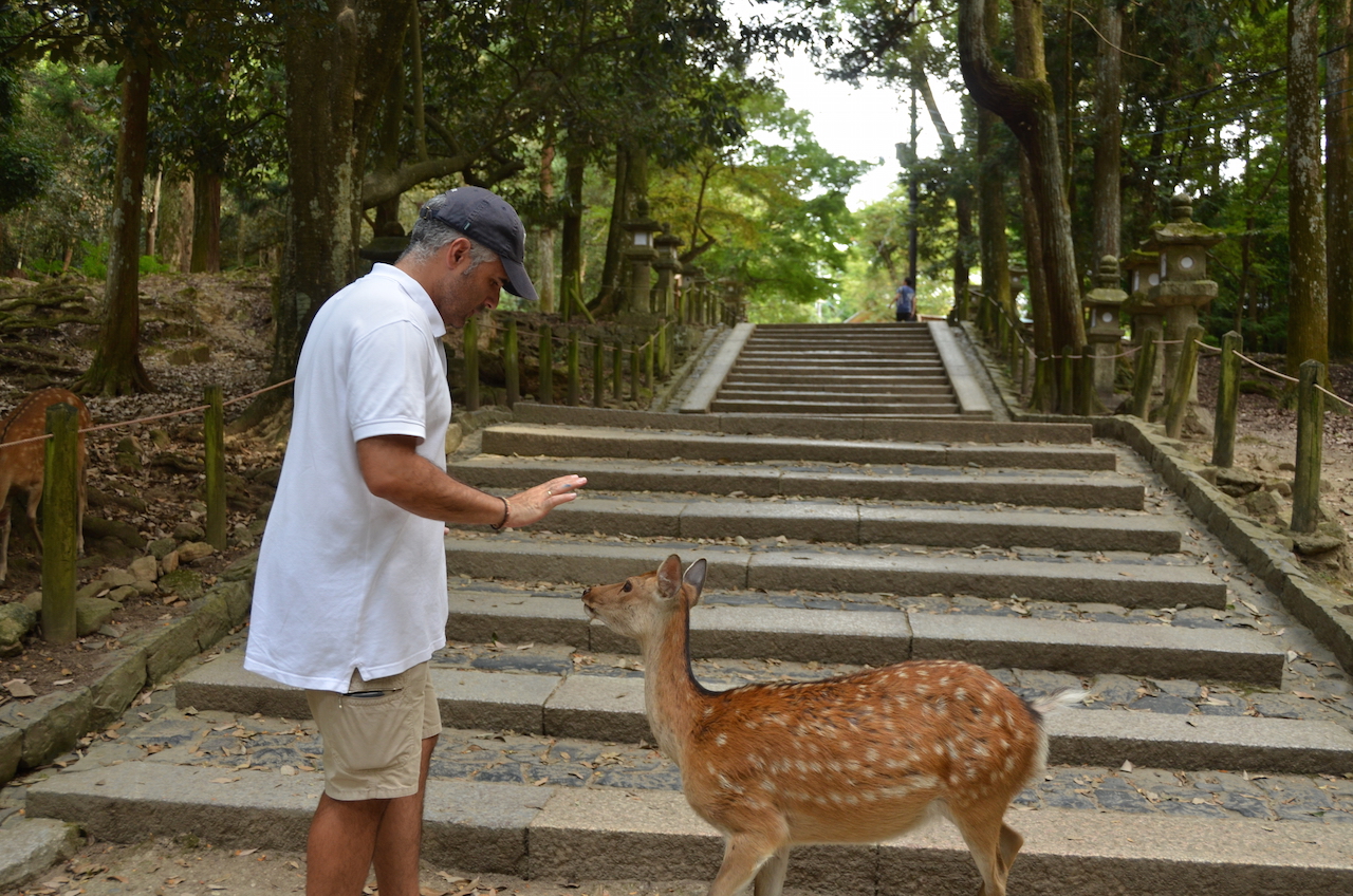 Seguimos paseando por el enorme parque en el que hay pequeños templos a cada paso, cada vez nos vamos encontrando con más ciervos, se notan que están muy acostumbrados a la gente y en seguida se acercan por si les cae algo de comida.