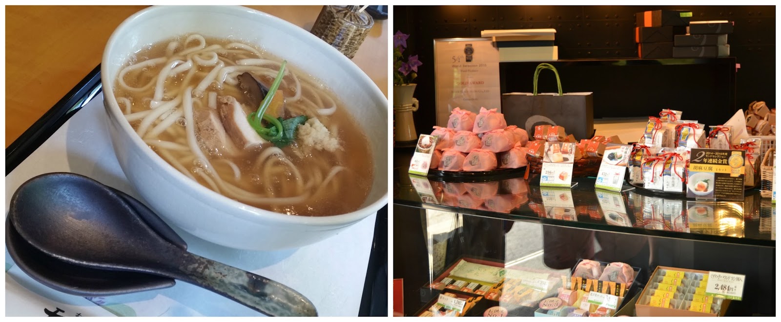 En el hotel nos recomendaron un pequeño restaurante que se encontraba a cinco minutos caminando donde preparaban Udon, unos típicos fideos elaborados con arroz, en el local vendían muchos dulces elaborados con pasta de arroz que al parecer son muy famosos.