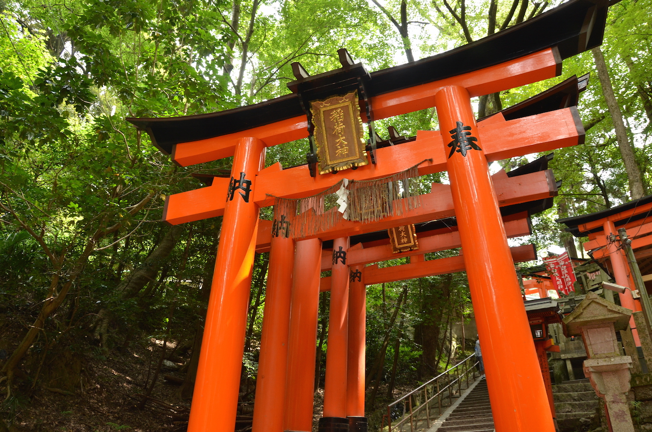 El templo de Fushimi Inari está dedicado al dios Inari, el dios del arroz, considerado como símbolo de riqueza. Es el dios de todos los que se dedican a los negocios y comercio. Los comerciantes donan al templo los toriis con su nombre para que el dios Inari proteja sus negocios y éstos sean prósperos. Deben tener mucha fe en este dios a juzgar por la cantidad de toriis que se acumulan en el recinto.