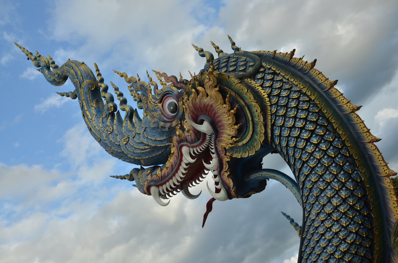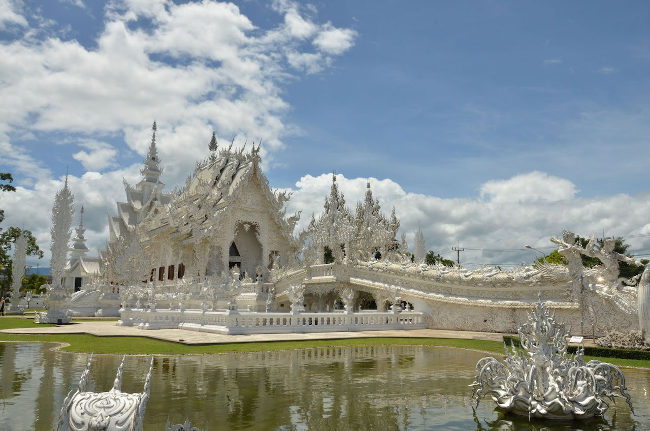 En realidad el templo blanco es una reconstrucción de un templo que ya existía en el mismo lugar. Fue en 1996 cuando un habitante de Chiang Rai, el artista Charlemchai Kositpipat retomó la reconstrucción del templo como un proyecto personal que mezcla el estilo tradicional con el arte moderno tailandés, dando como resultado lo que podemos ver hoy en día. La reconstrucción aún no está acabada por completo y se estima que no estará hasta aproximadamente 2070, igual ya me pilla un poco mayor para ir a la inauguración jejejeje.