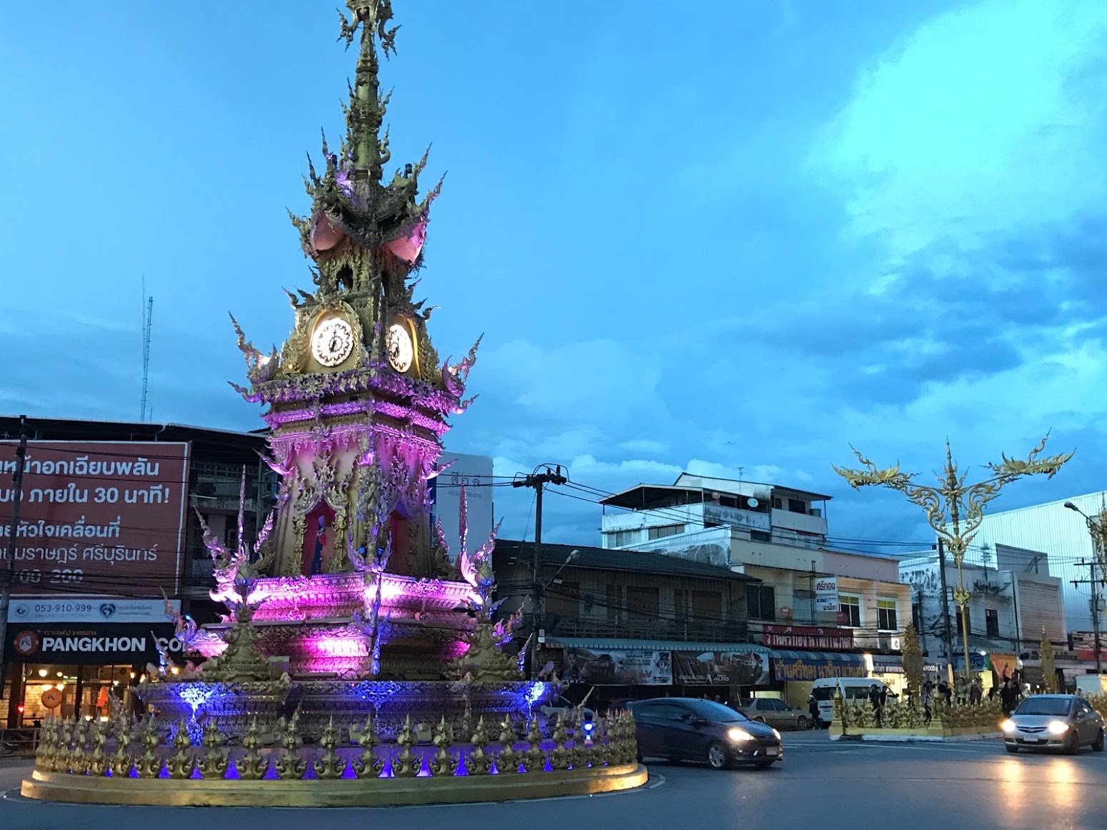 En un corto paseo llegamos hasta otro de los monumentos más famosos de Chiang Rai, su Clock Tower, la Torre del Reloj.