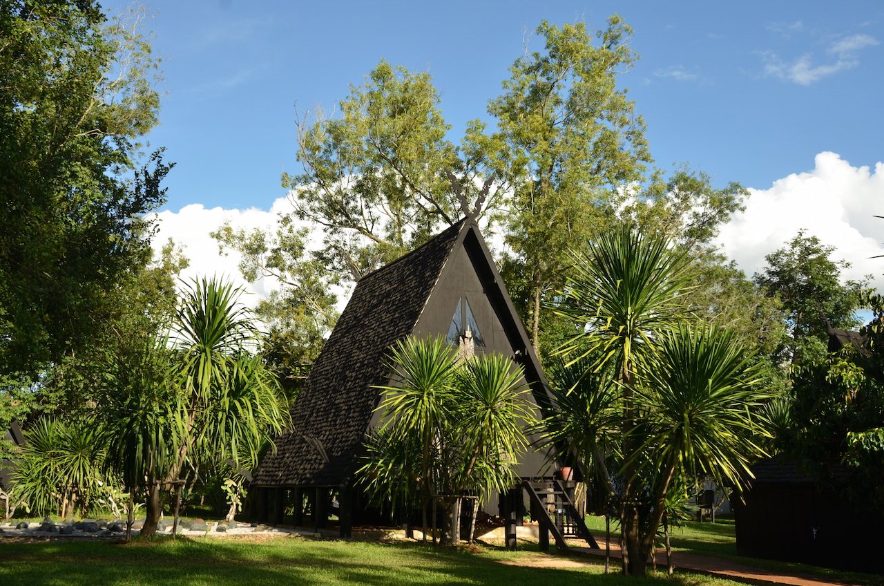 En realidad es un conjunto de edificios de madera inspirados en la arquitectura de palacios y templos de Tailandia y de otras partes del mundo.