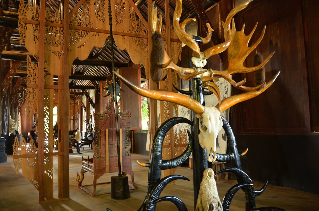Llama la atención la cantidad de objetos relacionados con los animales, pieles, cuernos, etc., que dan al lugar un ambiente bastante lúgubre y siniestro.