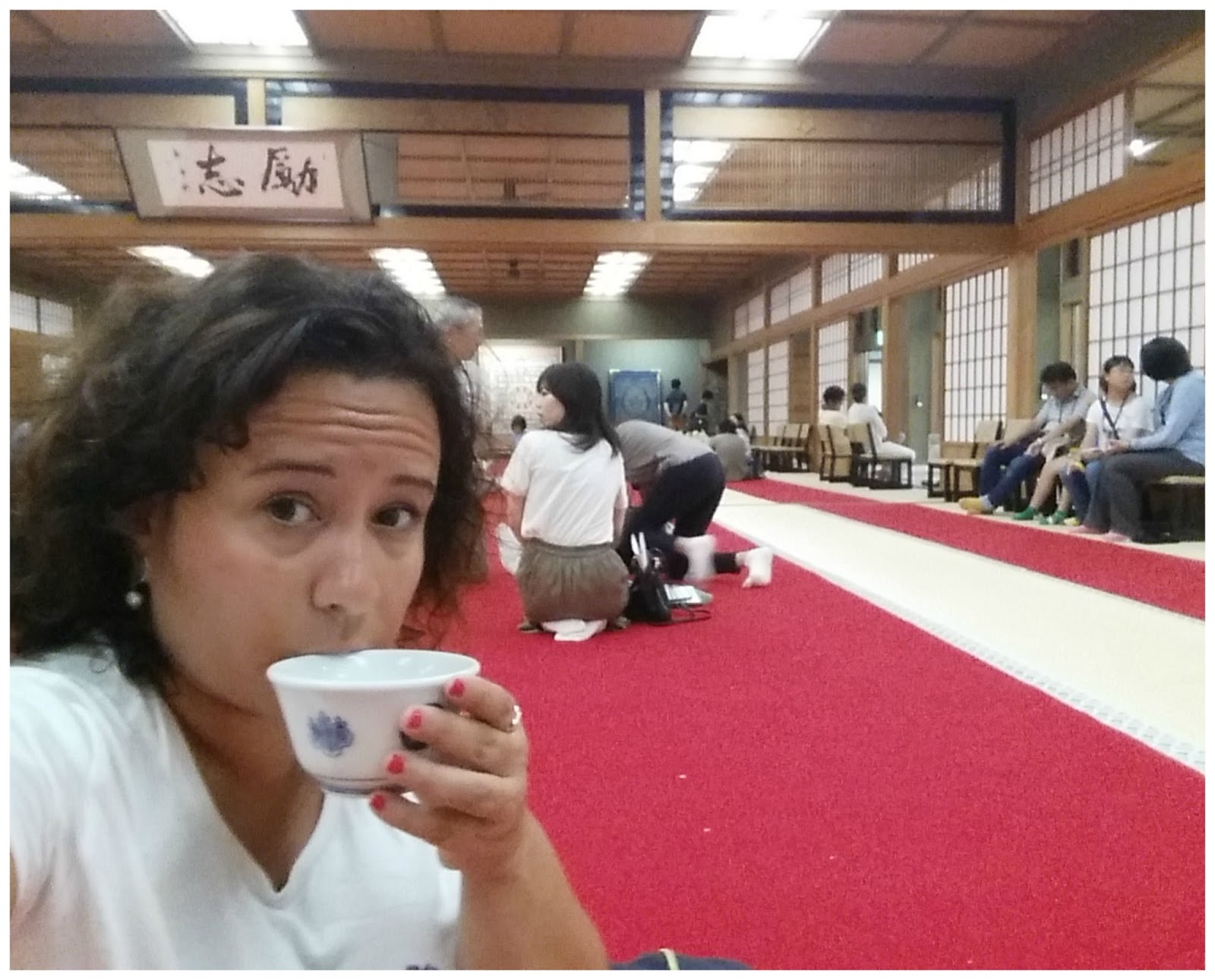 En uno de los salones del templo disfrutamos de un té con una galleta típica, allí estuvimos sentados un buen rato descansando.