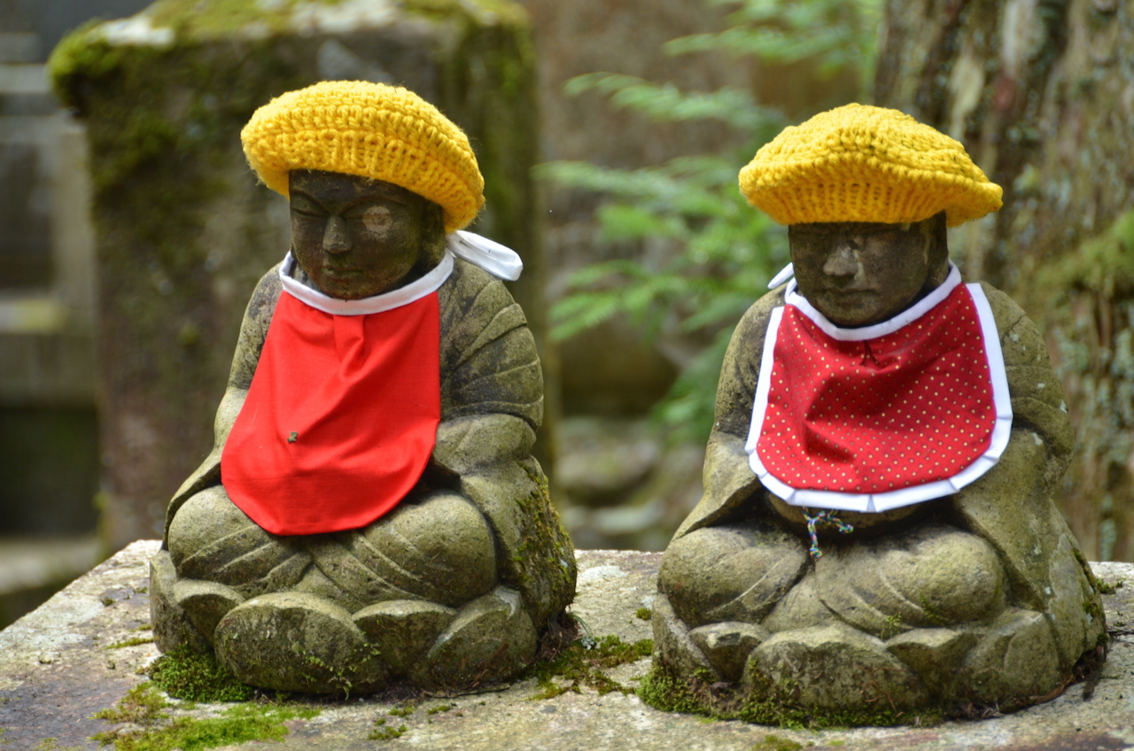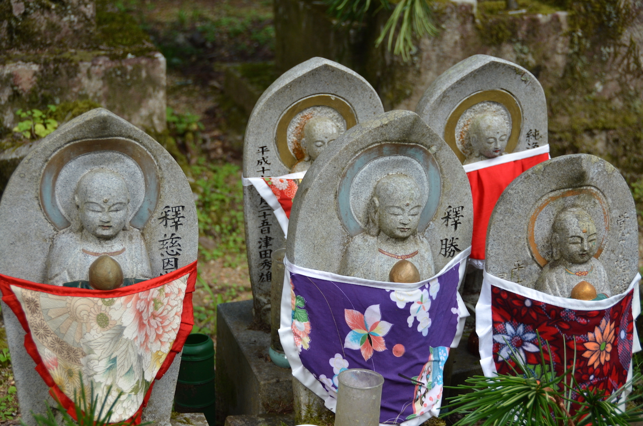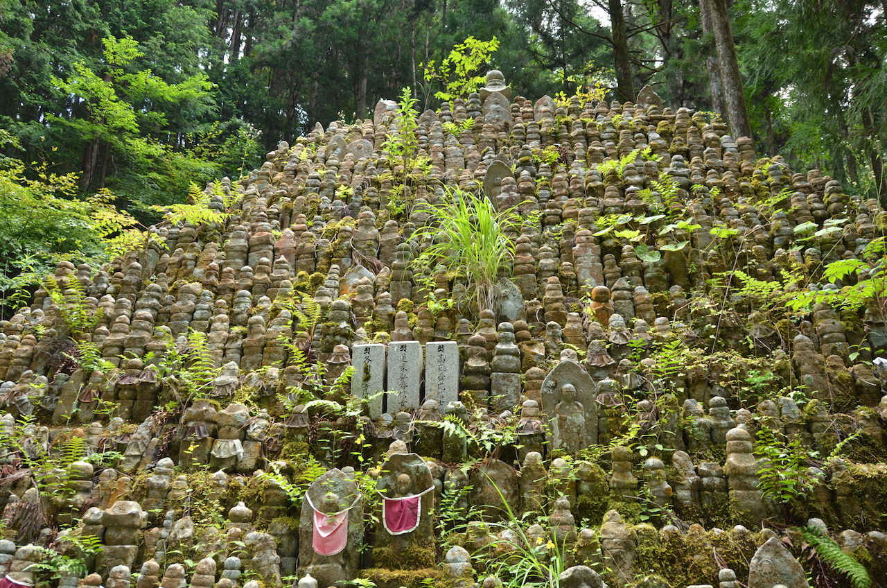 Hasta el mausoleo de Kobo-Daishi, el monje Kukai, hay aproximadamente unos dos kilómetros a lo largo de los cuales se pueden ver miles de estupas, estatuas jizos, todo el conjunto en un ambiente muy especial. Sólo las familias pudientes pueden ser enterrados allí.