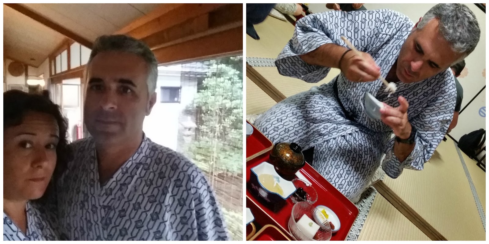 Después de ver el Kongobu-ji, nos vamos a nuestro shukubo para prepararnos para la cena. Nos ponemos nuestras yukatas y a las 17,30 nos reunimos con el resto de huéspedes en la sala donde sirven las comidas.