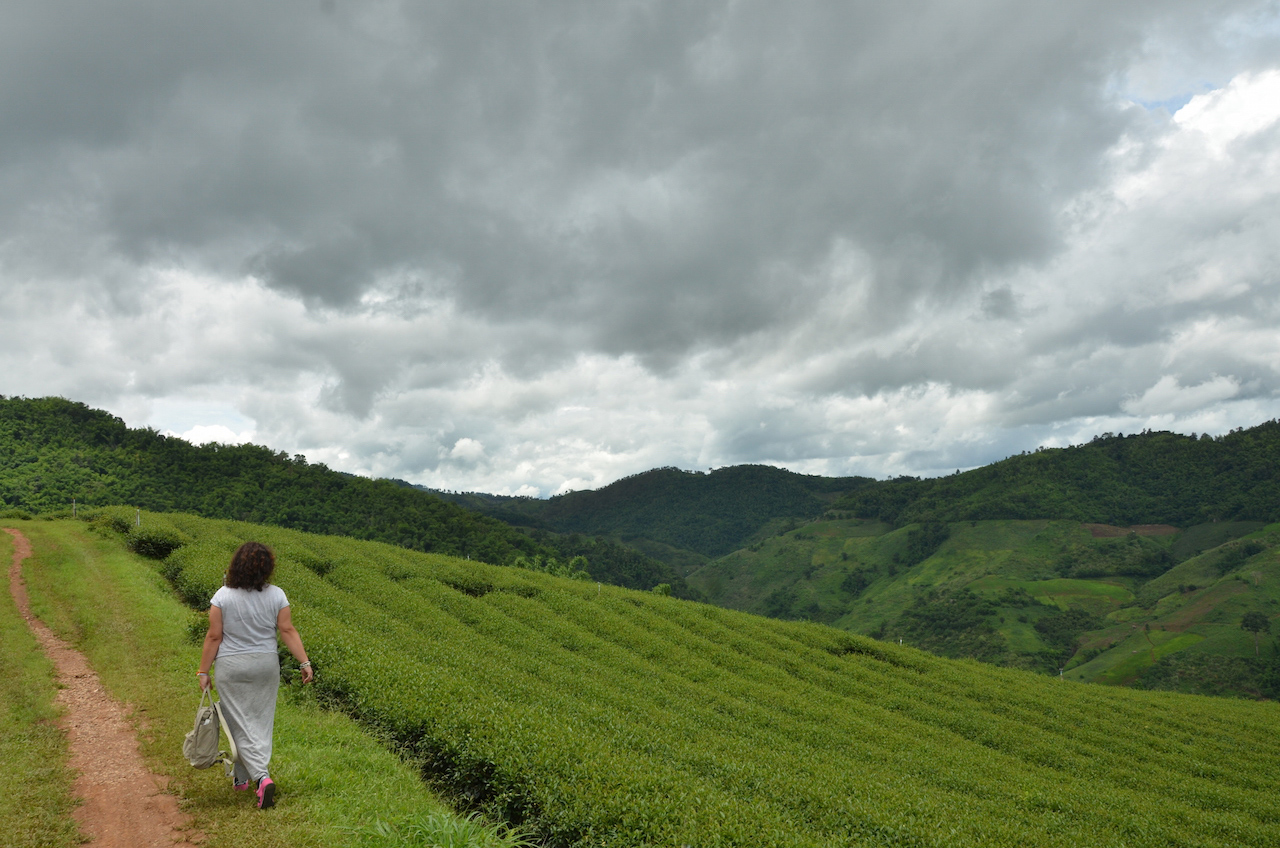 Nuestra última parada en esta zona de Mae Salong fue en una de las plantaciones de té de la zona, allí pudimos entrar en las instalaciones y caminar entre los campos, el paisaje era espectacular.
