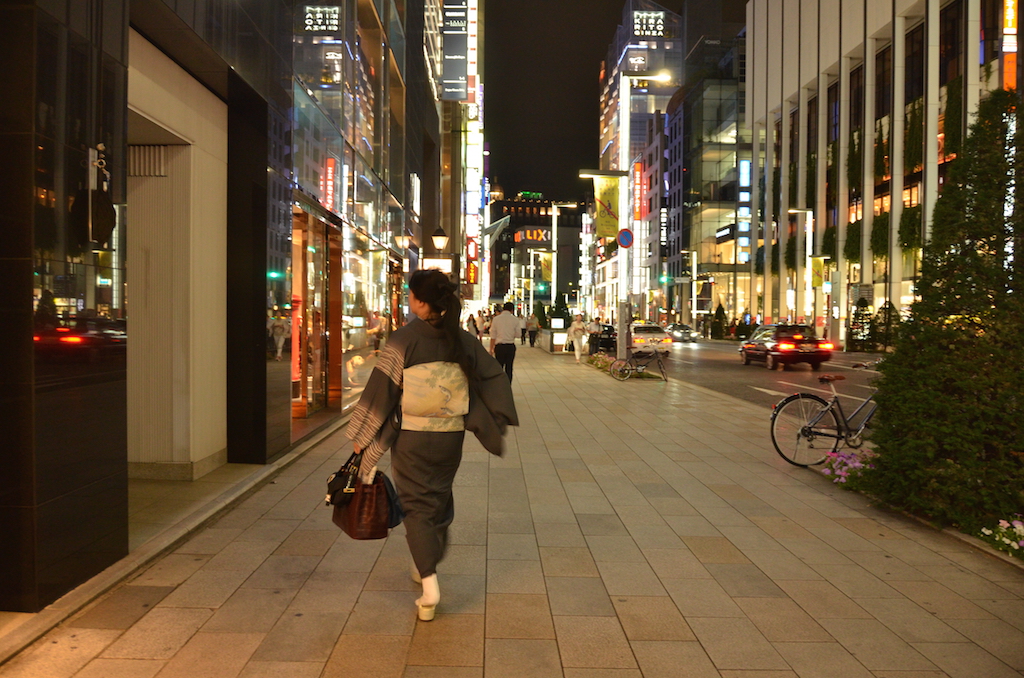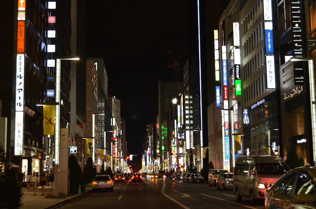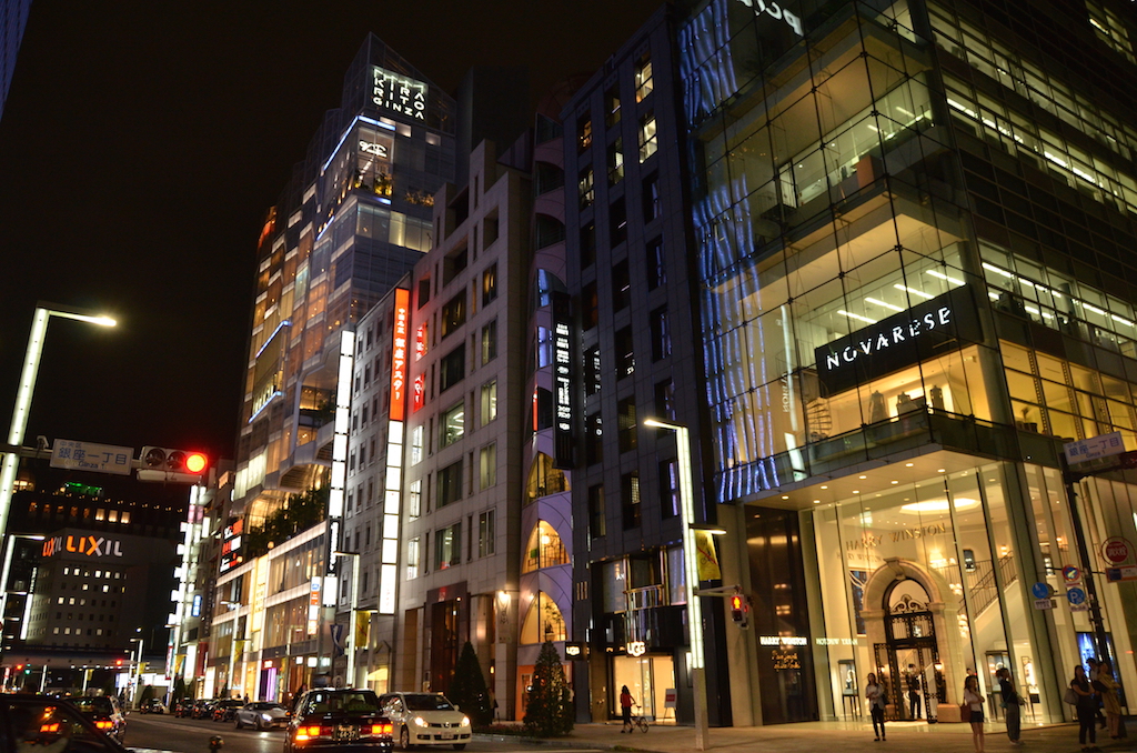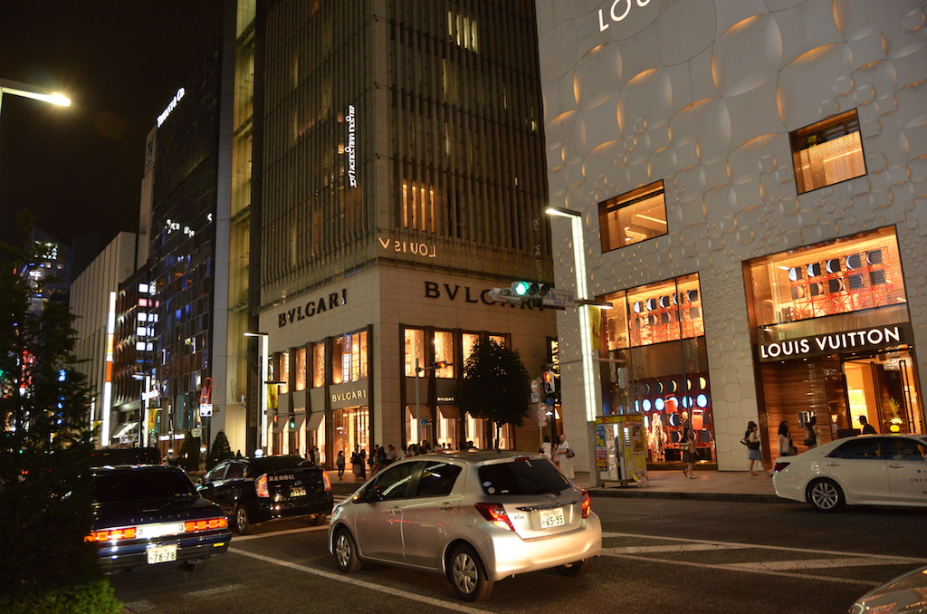 Dimos un agradable paseo nocturno por alguna de las calles  del barrio más exclusivo de Tokio.