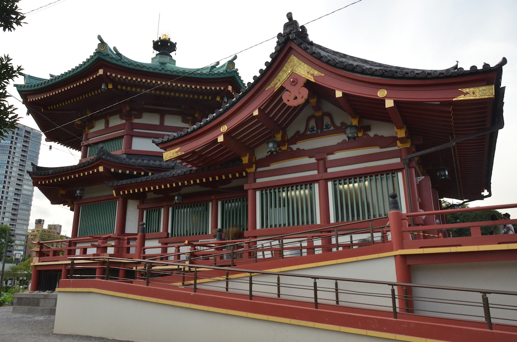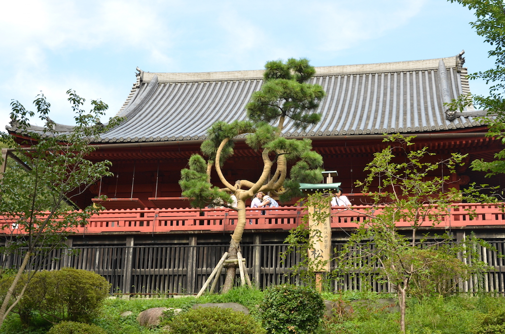 Justo al lado, entre los árboles, se encuentra  la Pagoda que antiguamente formaba parte del templo Kaneiji, un templo que fue durante la etapa Edo uno de los  más grandes e importantes de la ciudad, fue destruido y algunas de sus partes están repartidas por el Parque Ueno, entre ellas el santuario Tosho-gu y la gran Pagoda de cinco pisos.
