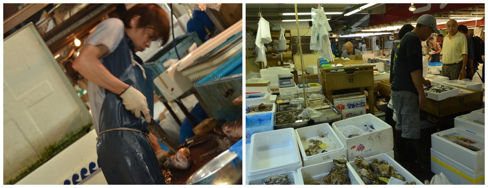 Cuando nosotros entramos en el mercado, la mayor parte de los puestos ya estaban recogiendo la mercancía que les quedaba, pero aún pudimos ver muchos cajones con pescado aún vivo e incluso restos de algún atún que había sido vendido en ese día. Pasear por el interior del mercado no es fácil, hay que tener en cuenta que la gente está trabajando y a veces los turistas podemos ser un incordio más que otra cosa. Hemos leído que para finales de año este mercado va a cerrar en este emplazamiento y que abrirá sus puertas en unas nuevas instalaciones.