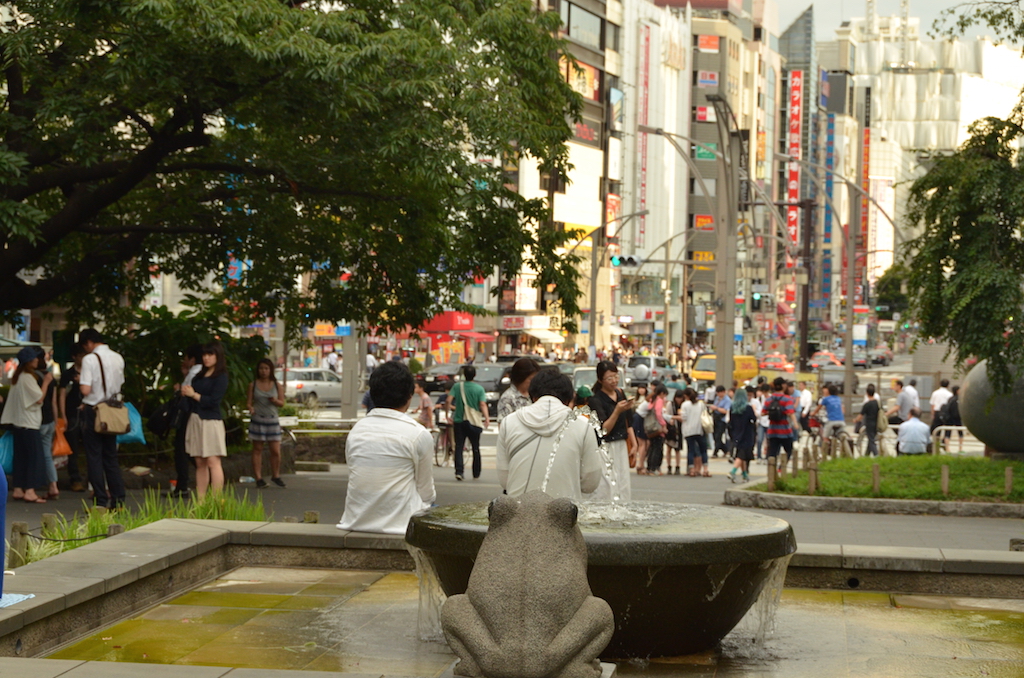 Fue en este parque donde probé mi primer helado japonés de té verde, de matcha en realidad. Reconozco que es un sabor extraño y comprendo que a mucha gente (no japonesa) no le agrada ese sabor, a mi me gusta bastante!!! Diego sin embargo, prefería probar otros sabores como flor de cerezo y cosas así, jejeje.