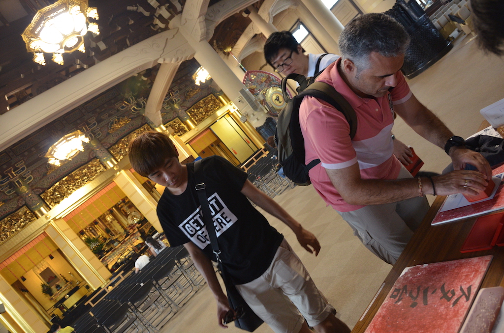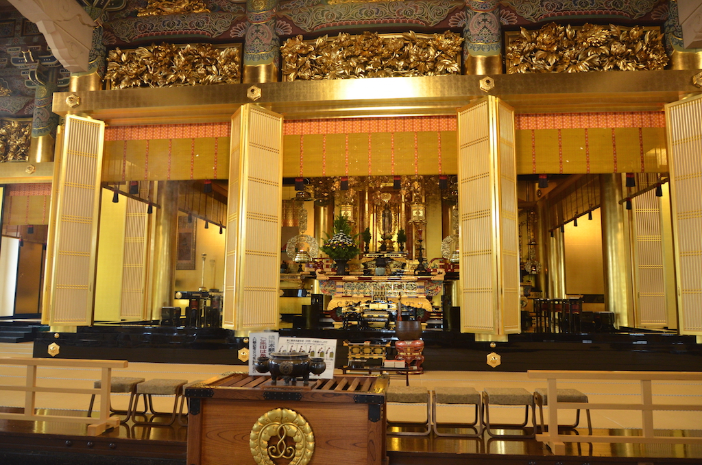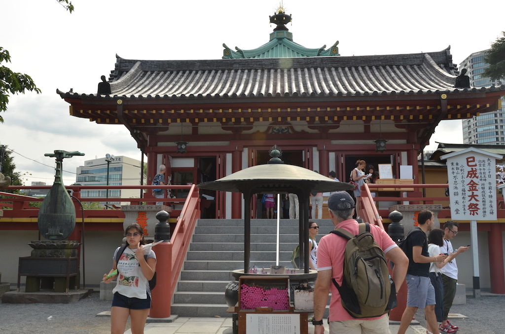 La sala principal tiene una imagen de Amida Buda y es aquí donde vemos por primera vez a personas haciendo ofrendas en el recipiente de incienso.