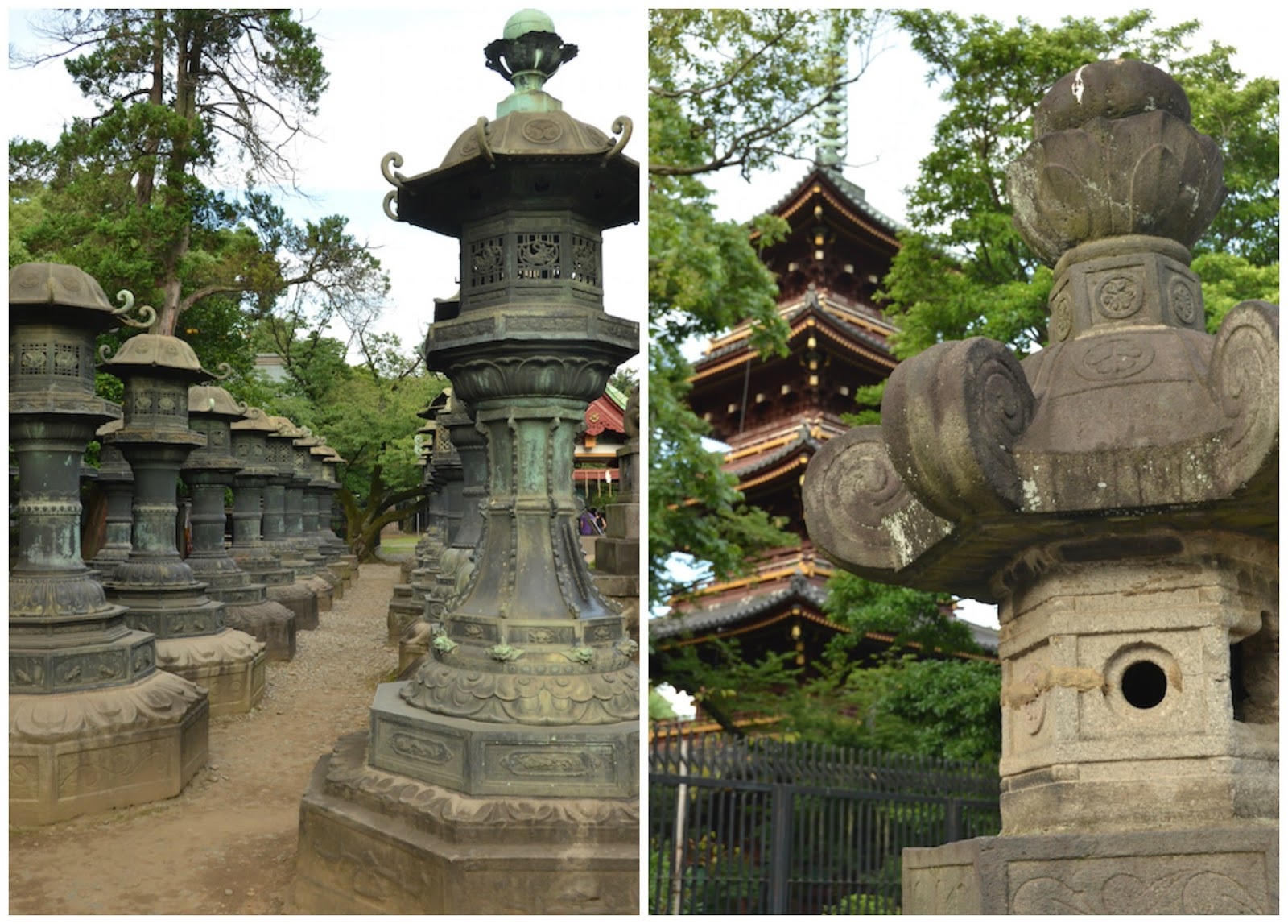 Tras un breve descanso nos fuimos a otro de los templos que se encuentran dentro del Parque Ueno, el Ueno Tosho-gu, aunque no visitamos su interior porque ya estaba cerrado. Este santuario destaca por sus tonos dorados y por el sendero de farolillos de piedra que hay antes de llegar.