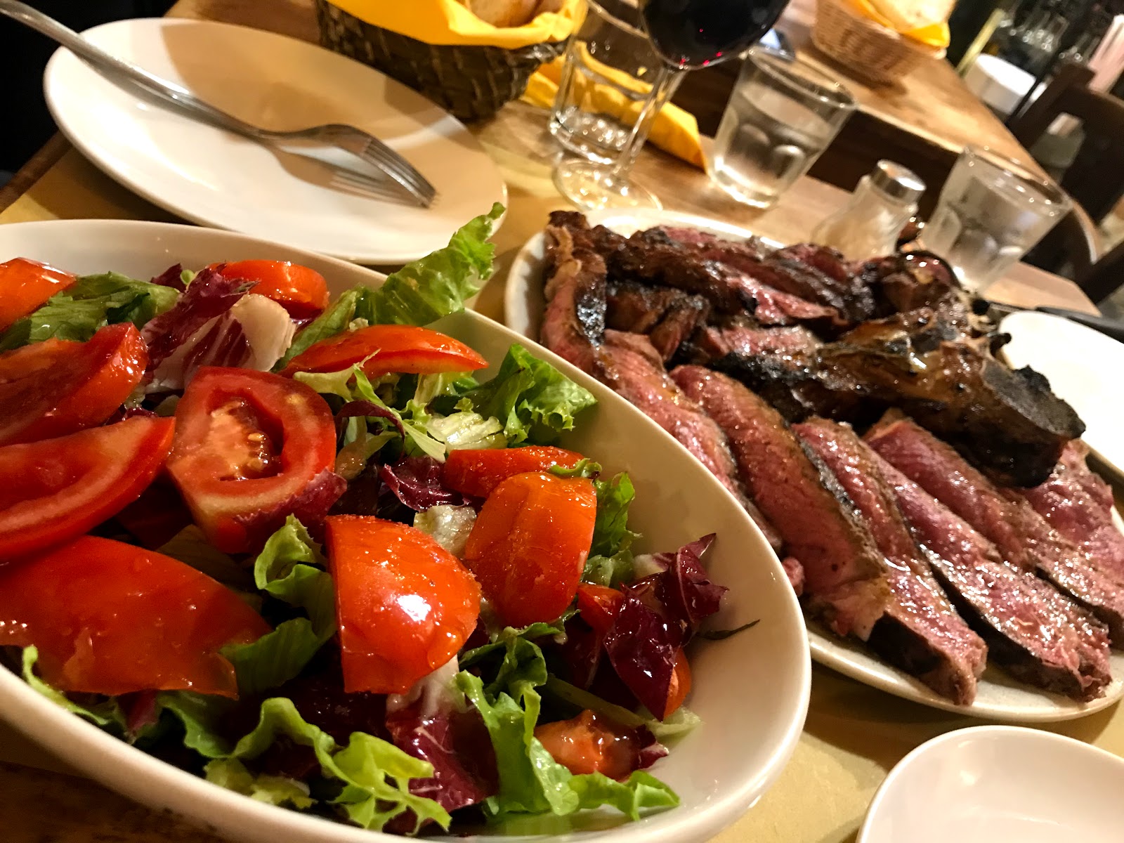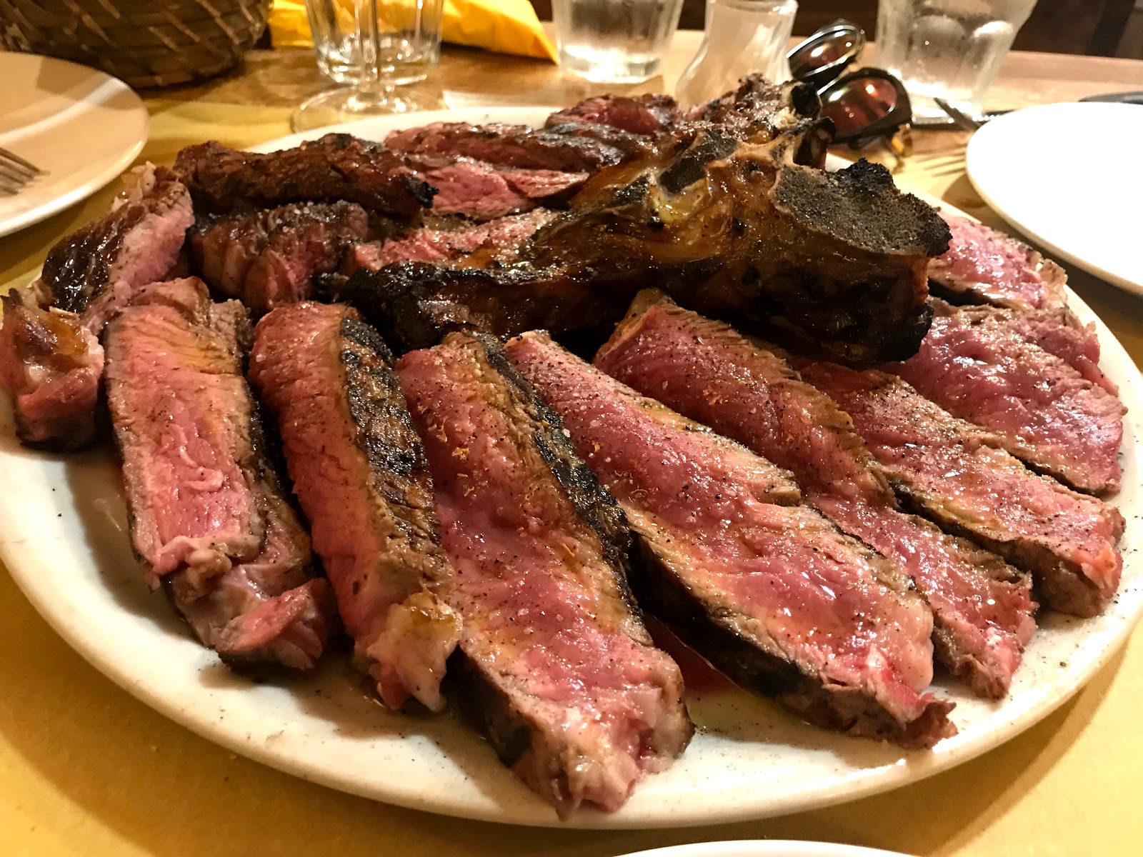 Había llegado la hora de comer y para este día habíamos elegido un restaurante perfecto para degustar una de las especialidades de la ciudad, la bisteca fiorentina. El restaurante elegido es La Fettunta, en Via dei Neri 72R, muy recomendable, con una relación calidad precio inmejorable. Nosotros compartimos un plato con una bisteca de aproximadamente un kilo para tres personas, una ensalada y postre y quedamos más que satisfechos.