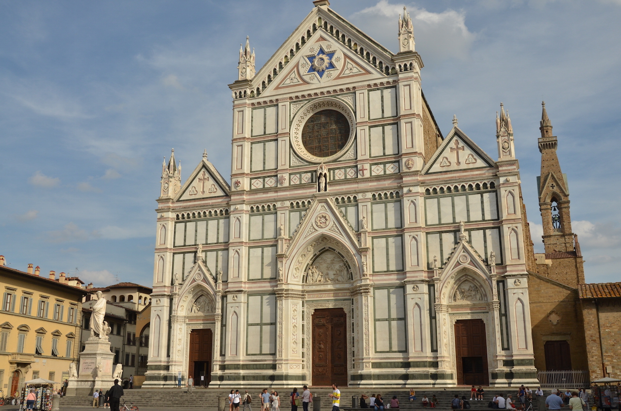Continuamos la visita con una de las Iglesias más famosas de la ciudad, La Basilica de Santa Croce. Fue construida por orden de los franciscanos con la intención de hacer una iglesia mayor que la de Santa Maria Novella regentada por los dominicos.